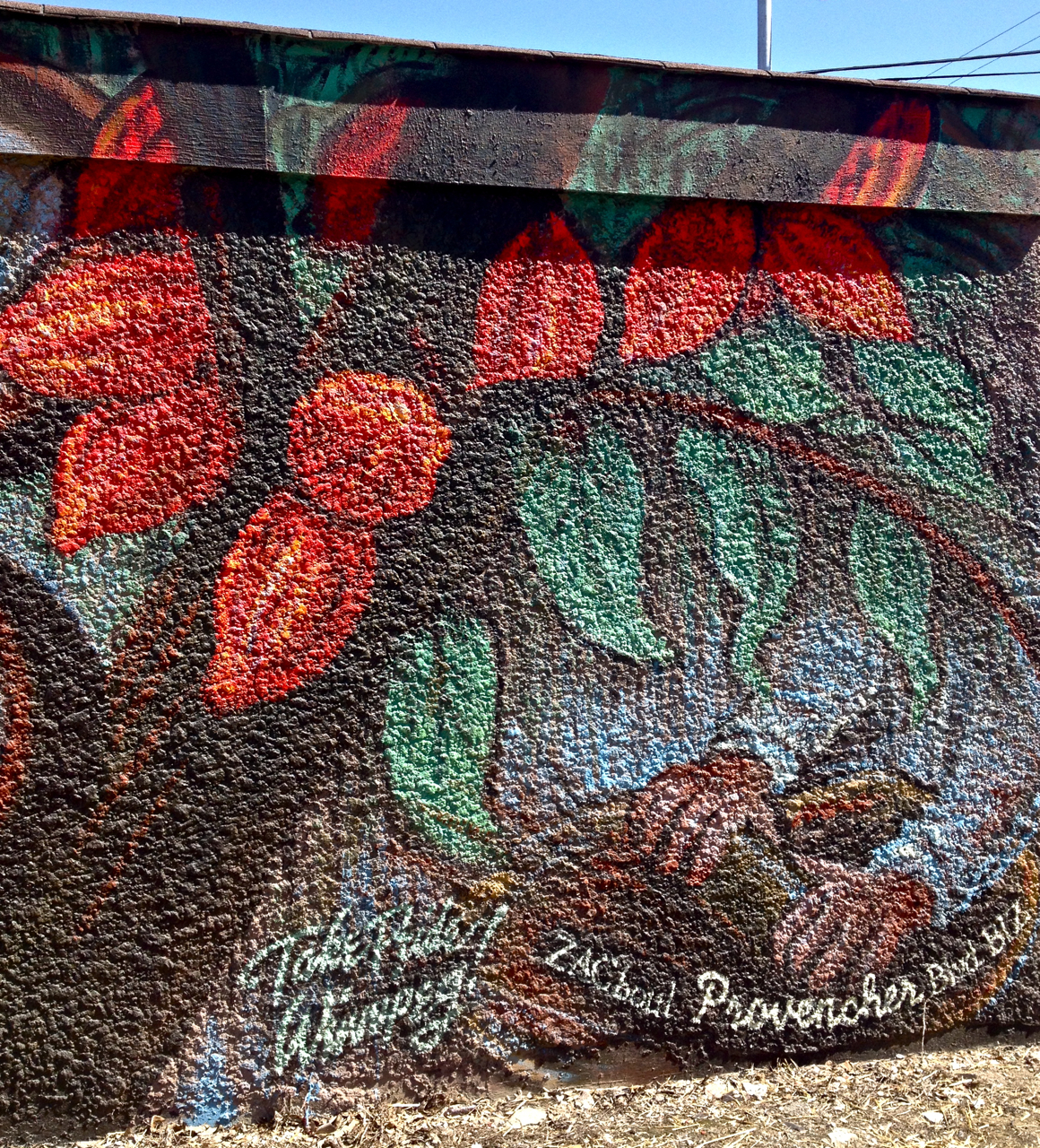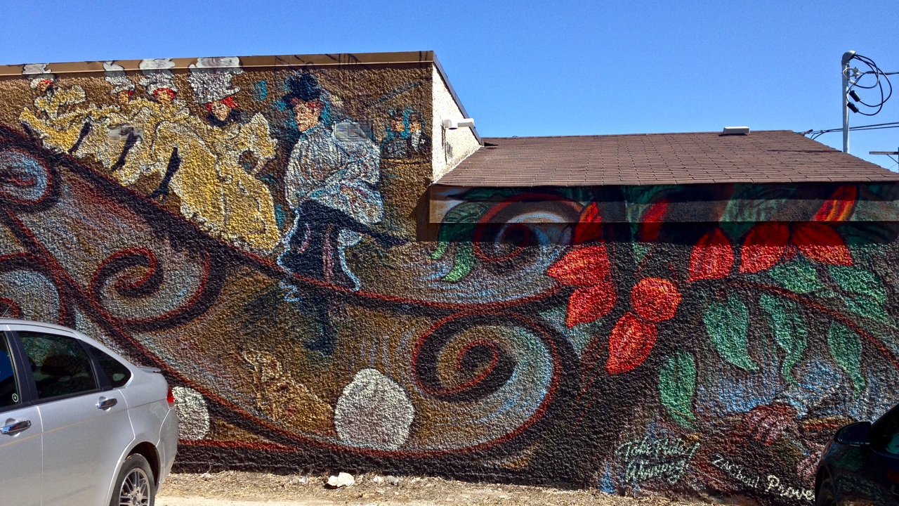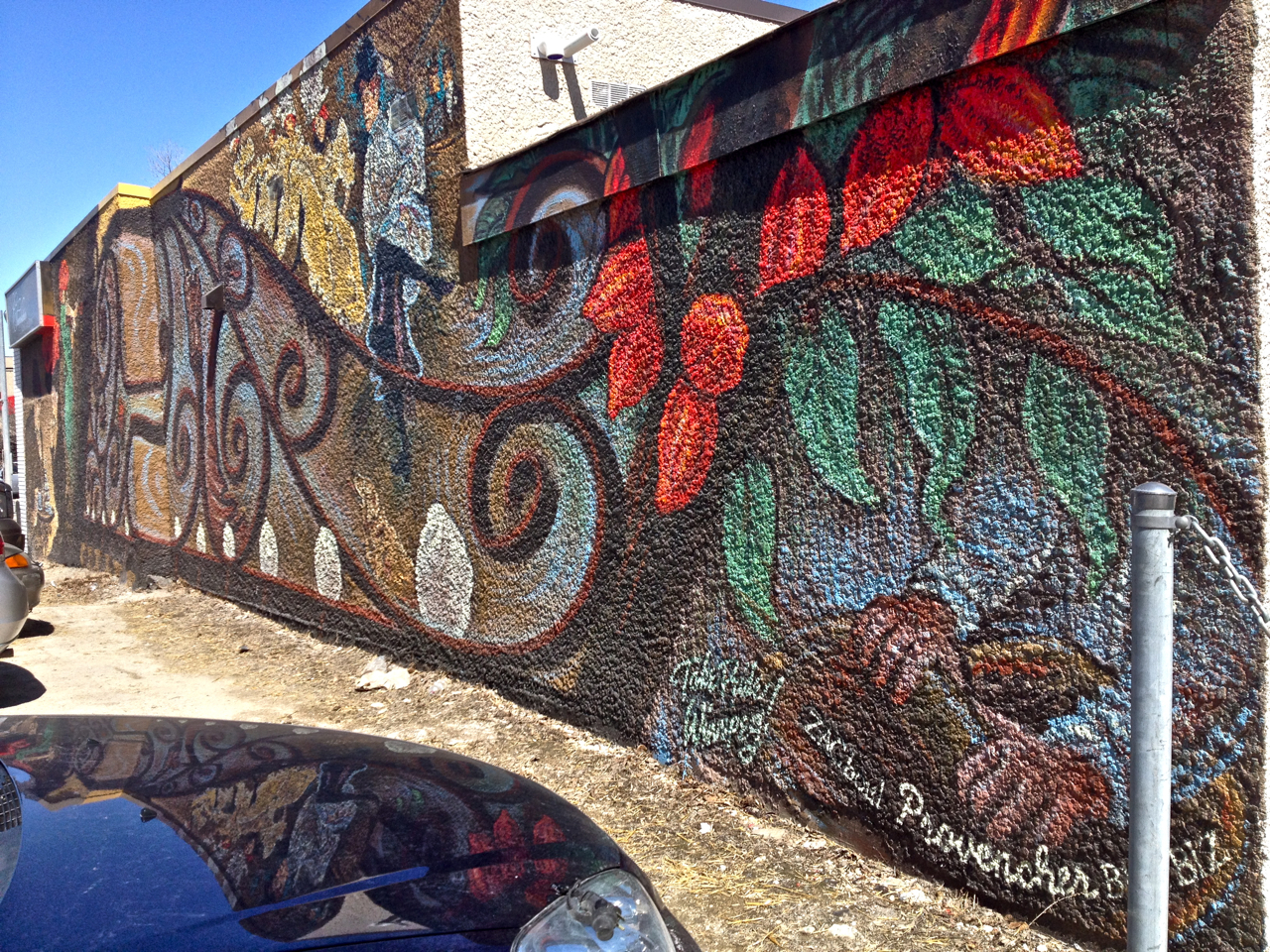 The heavily textured wall (like giant stucco) and prairie sun made this fabulous mural a challenge to shoot.