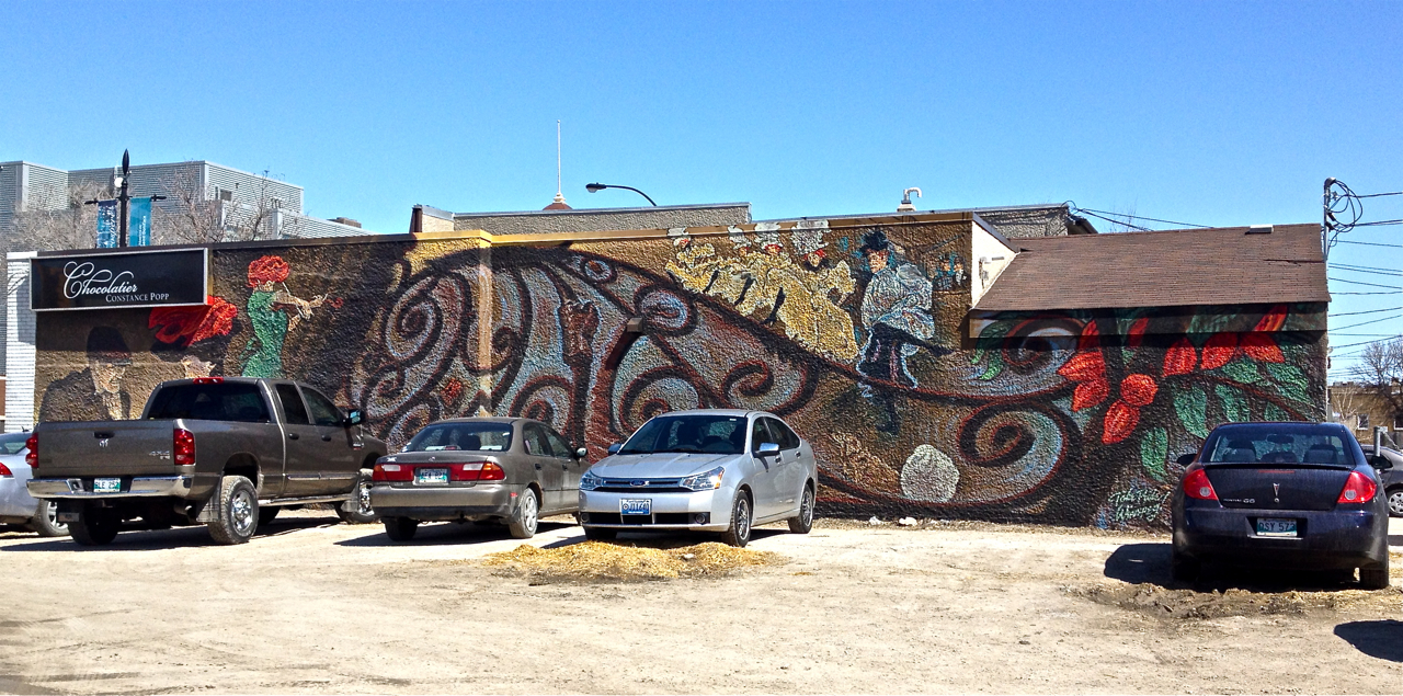 Best I could do on a long shot with a pedestrian camera, and 8 lanes of vicious Winnipeg traffic between the Mural and I.