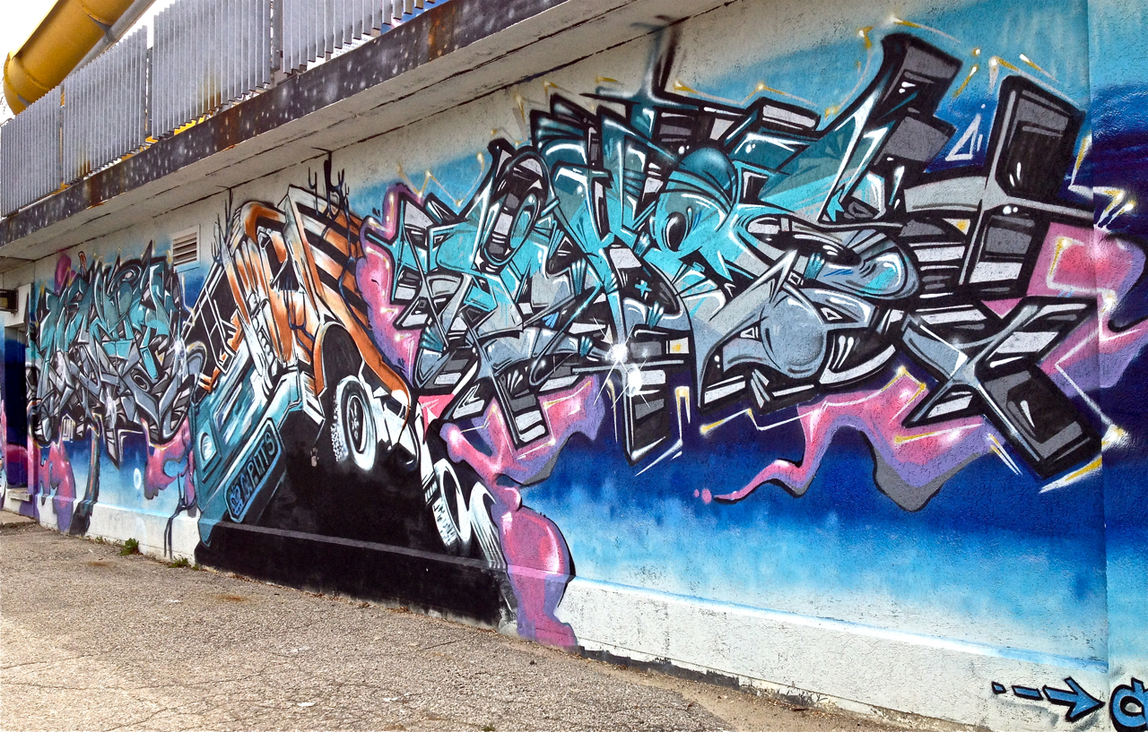 This mural is painted by the “LOFT CREW” including past and current LOFT artists, including Javid, Logan Miller, Brandon Ing, Mediah and Eli Masek-Kelly