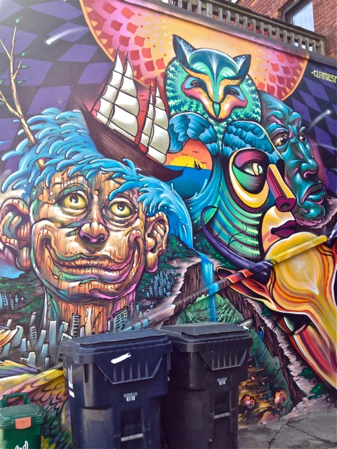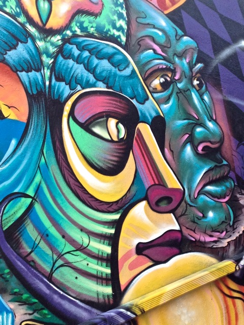 The wall is a cross block long. I had only 1 vantage point. The far end of the mural is barely discernible.