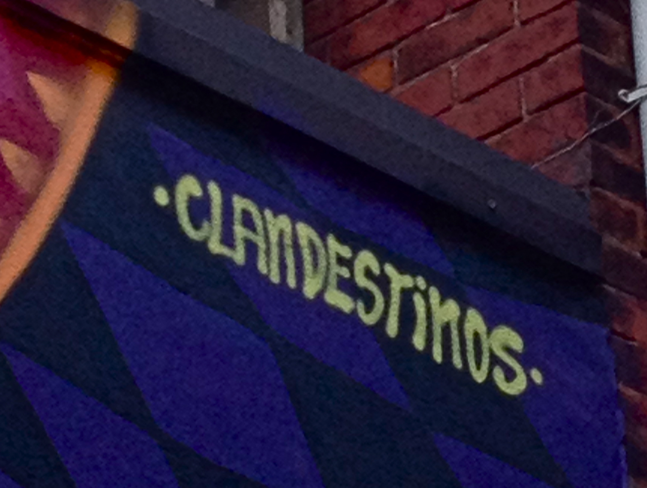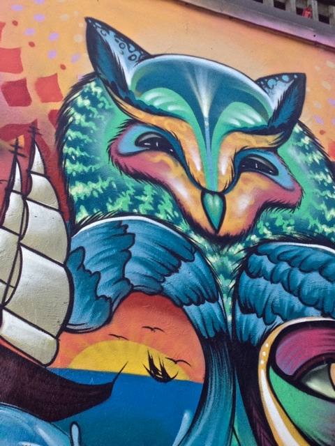 A club had taken over at least 2 monster parking lots. They painted the cement floor in colourful swirls and had a mural painted on the club’s building’s wall.