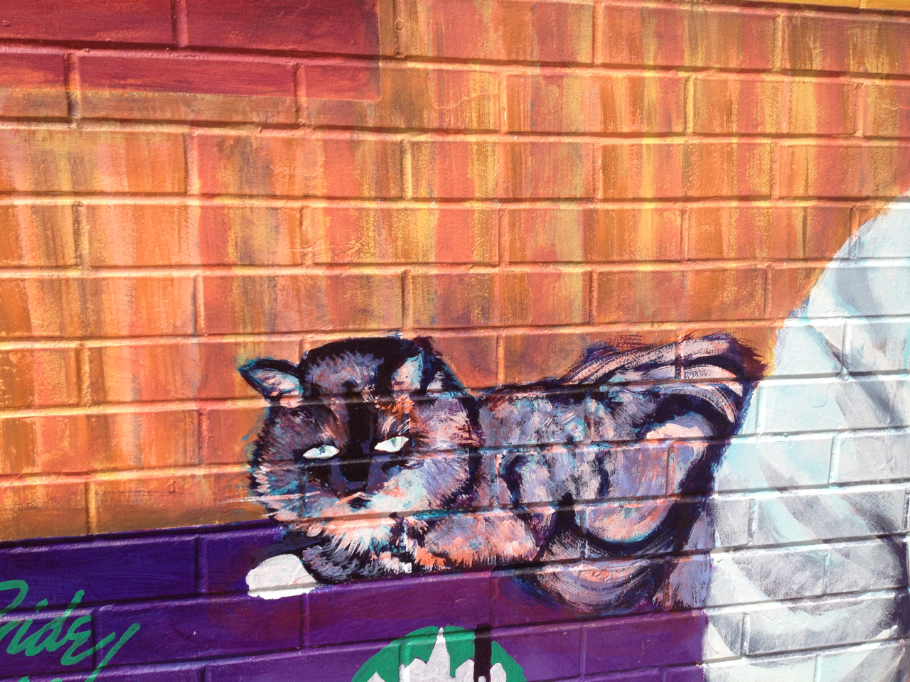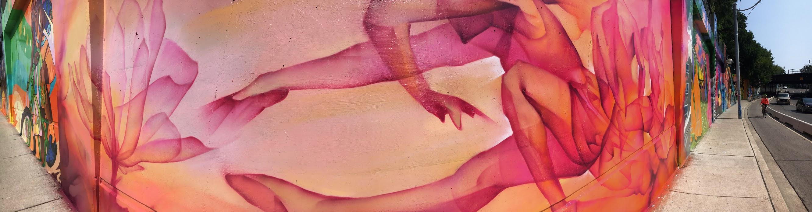 We couldn’t quite settle on any of the samples I sent. Then I found a quadriptych in an alley in Cabbagetown. The colours were perfect for the rainbow he was using in his video.