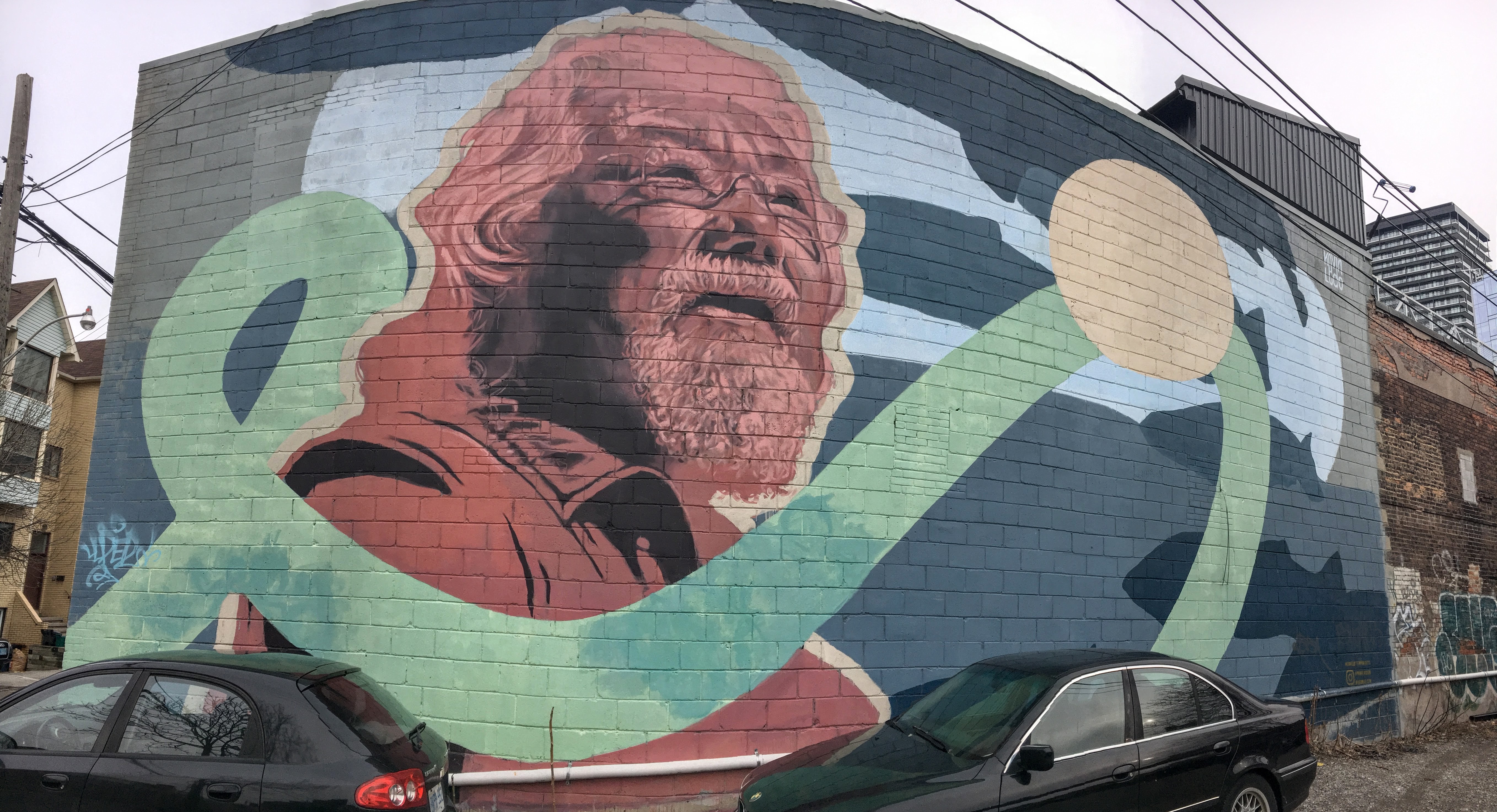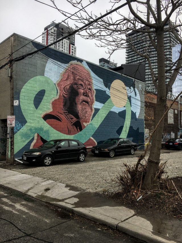 It’s not a flashy, or pretty mural. It is simply David Suzuki’s head on a wall in an alley. Yet, I was honored to have found this mural on one of my expeditions.