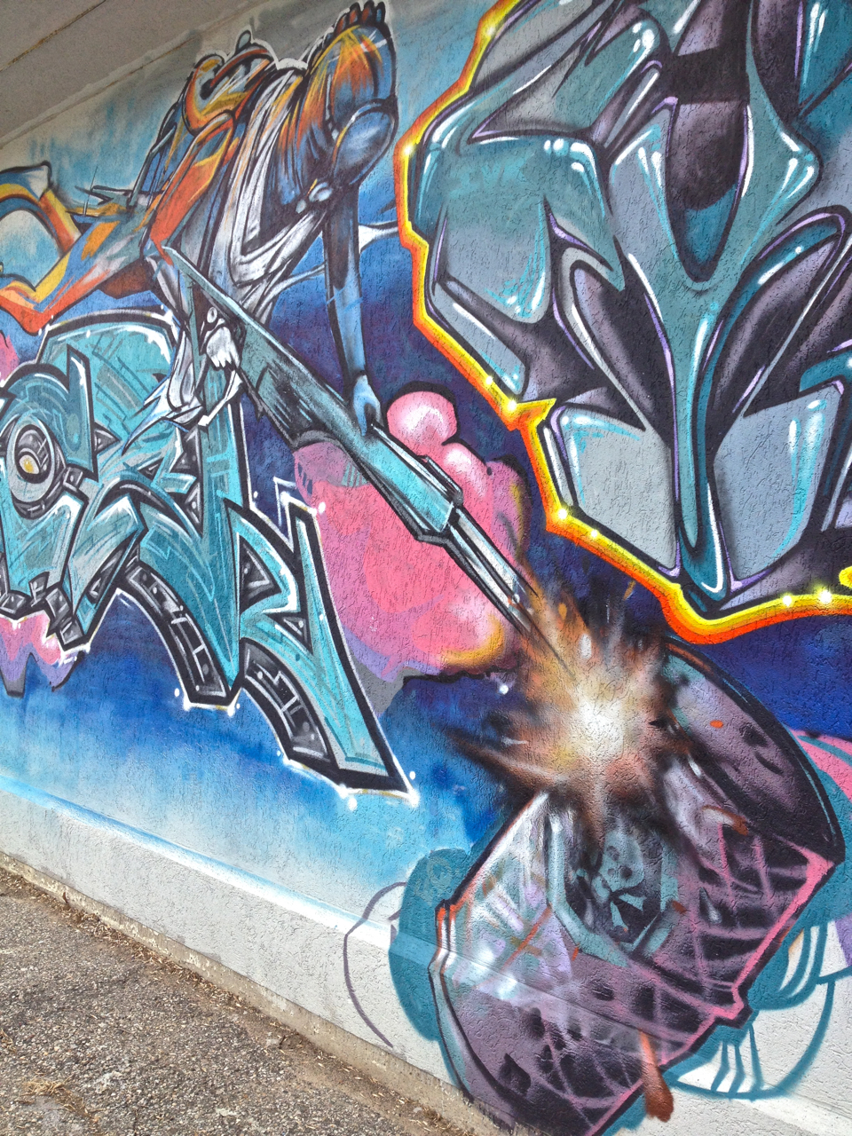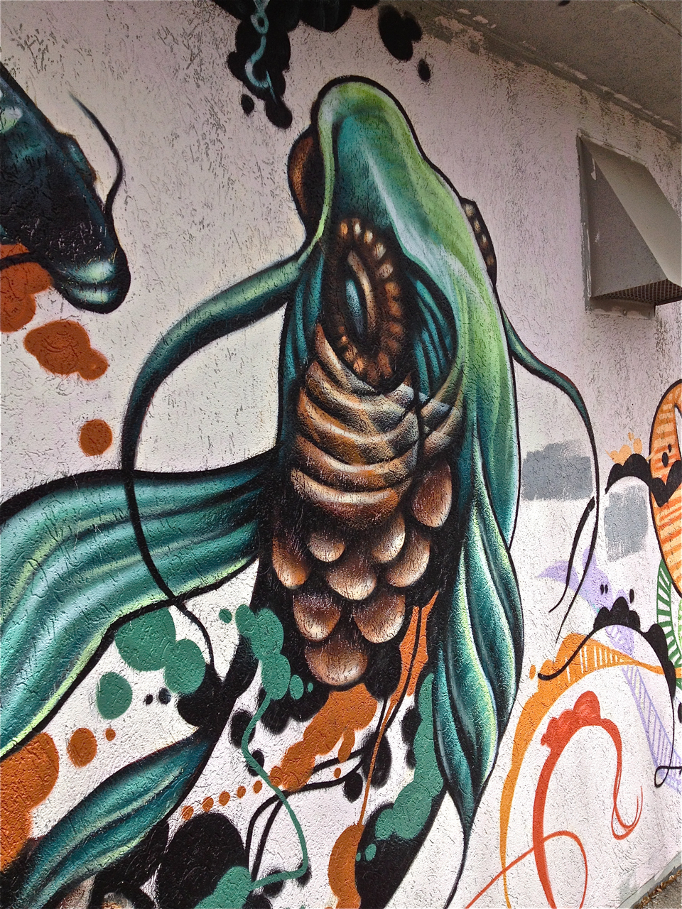 Although side 2 of the mural has a consistent coloration (mostly), it really is 4 smaller murals. The first one I call Octopus.