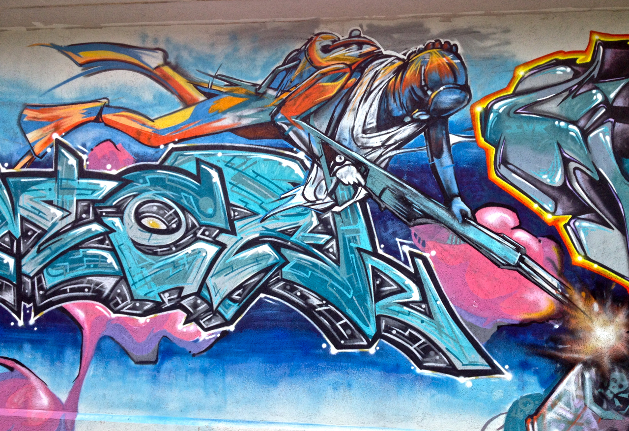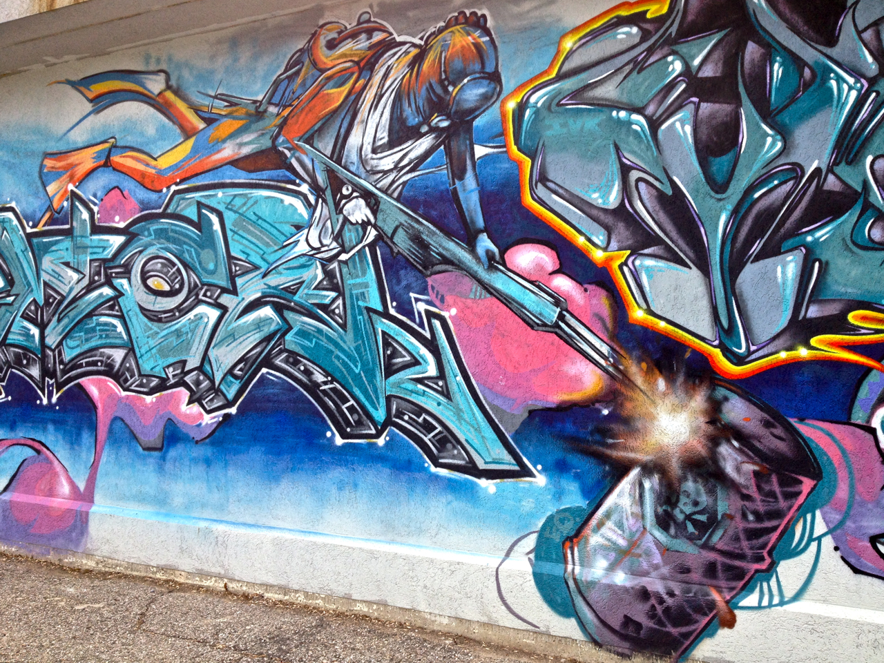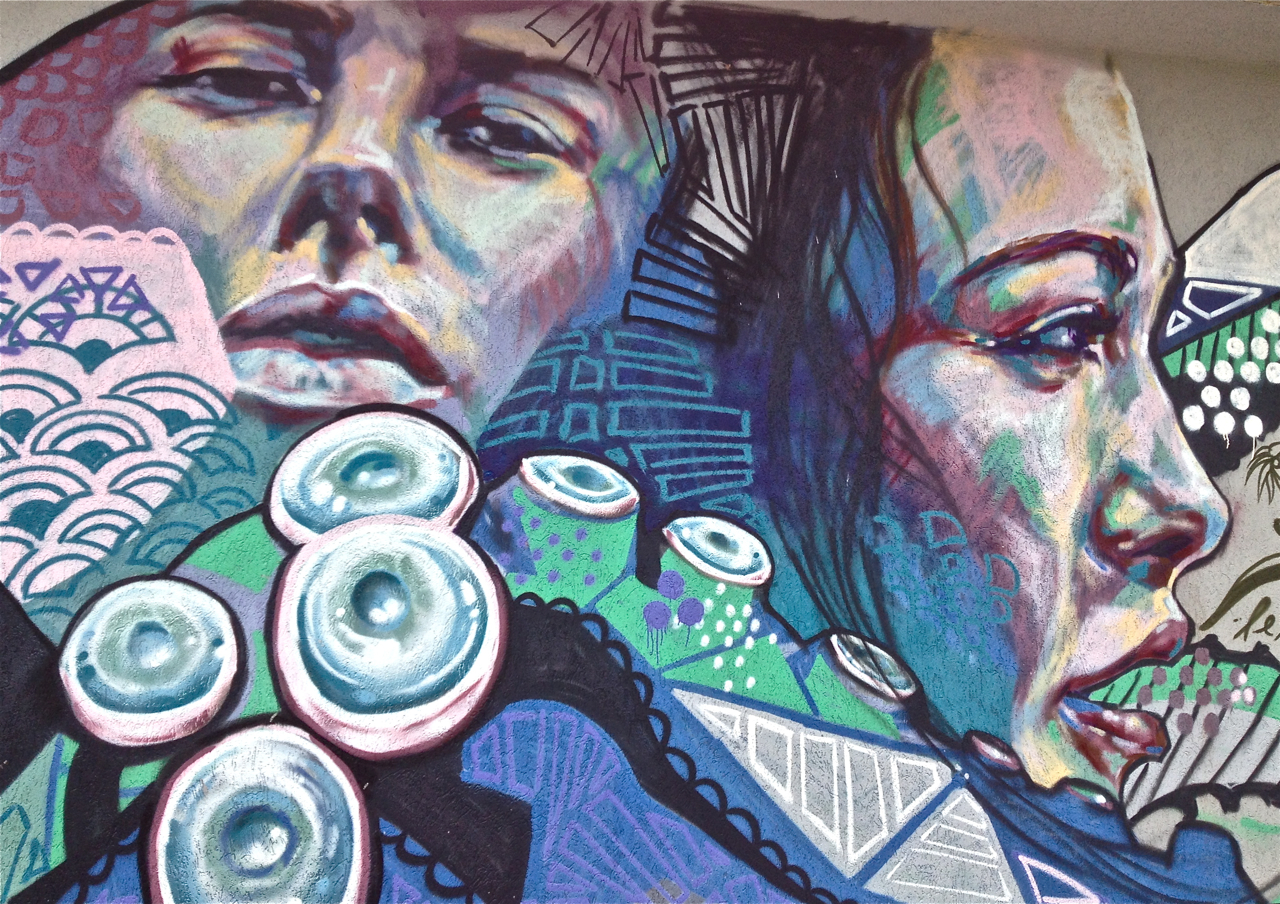 This mural is painted by the “LOFT CREW” including past and current LOFT artists, including Javid, Logan Miller, Brandon Ing, Mediah and Eli Masek-Kelly