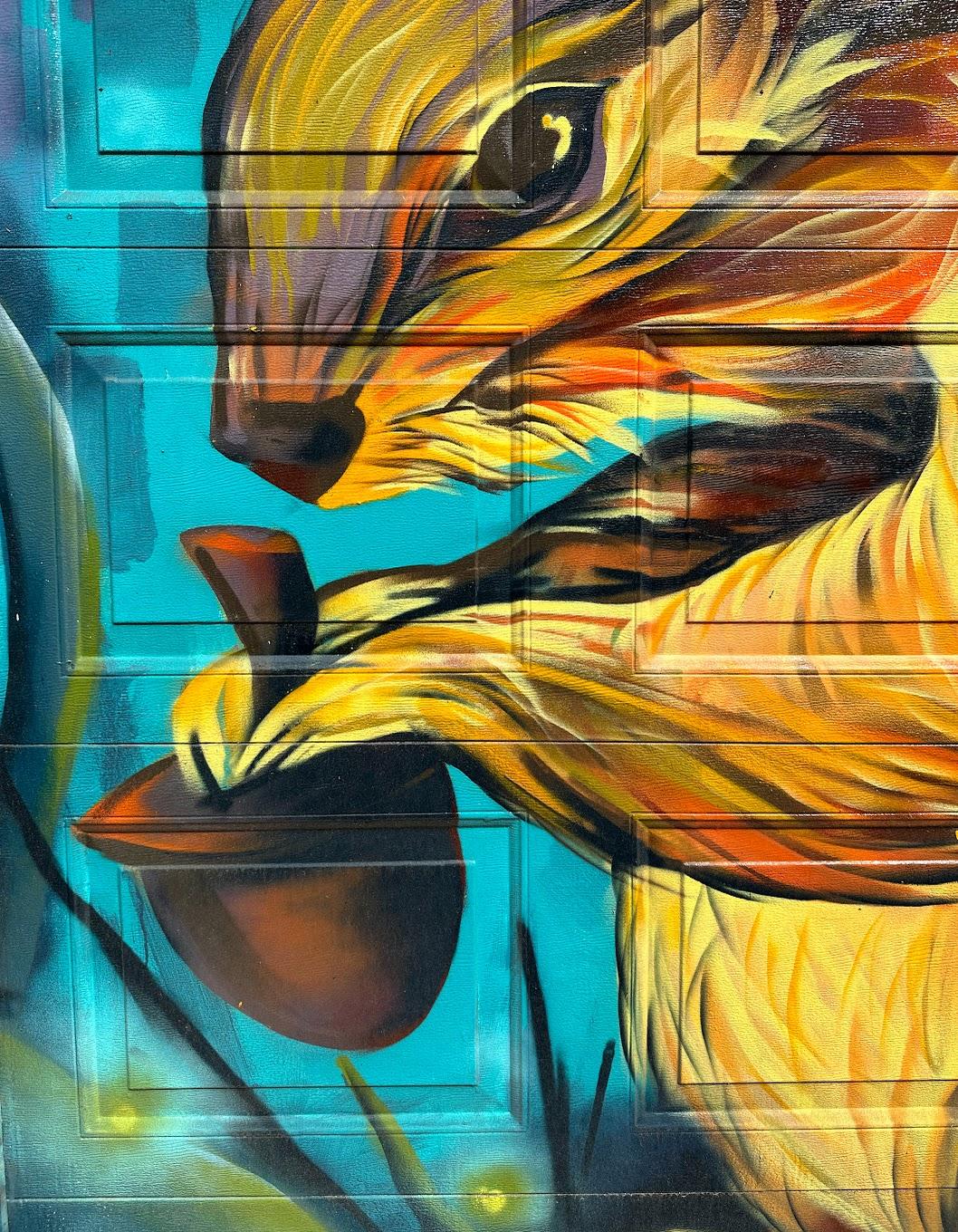 Anyway, fell in love with the squirrel when I saw it, but the sun was bright and made annoying shadows on the art.