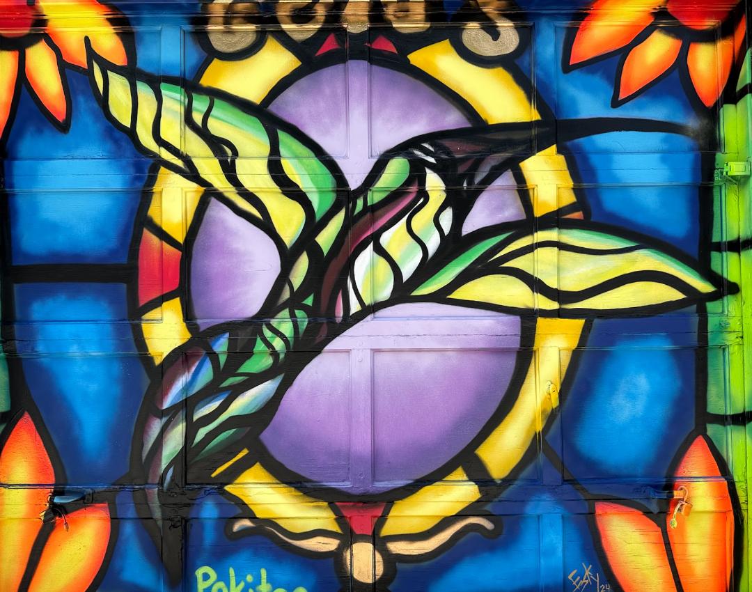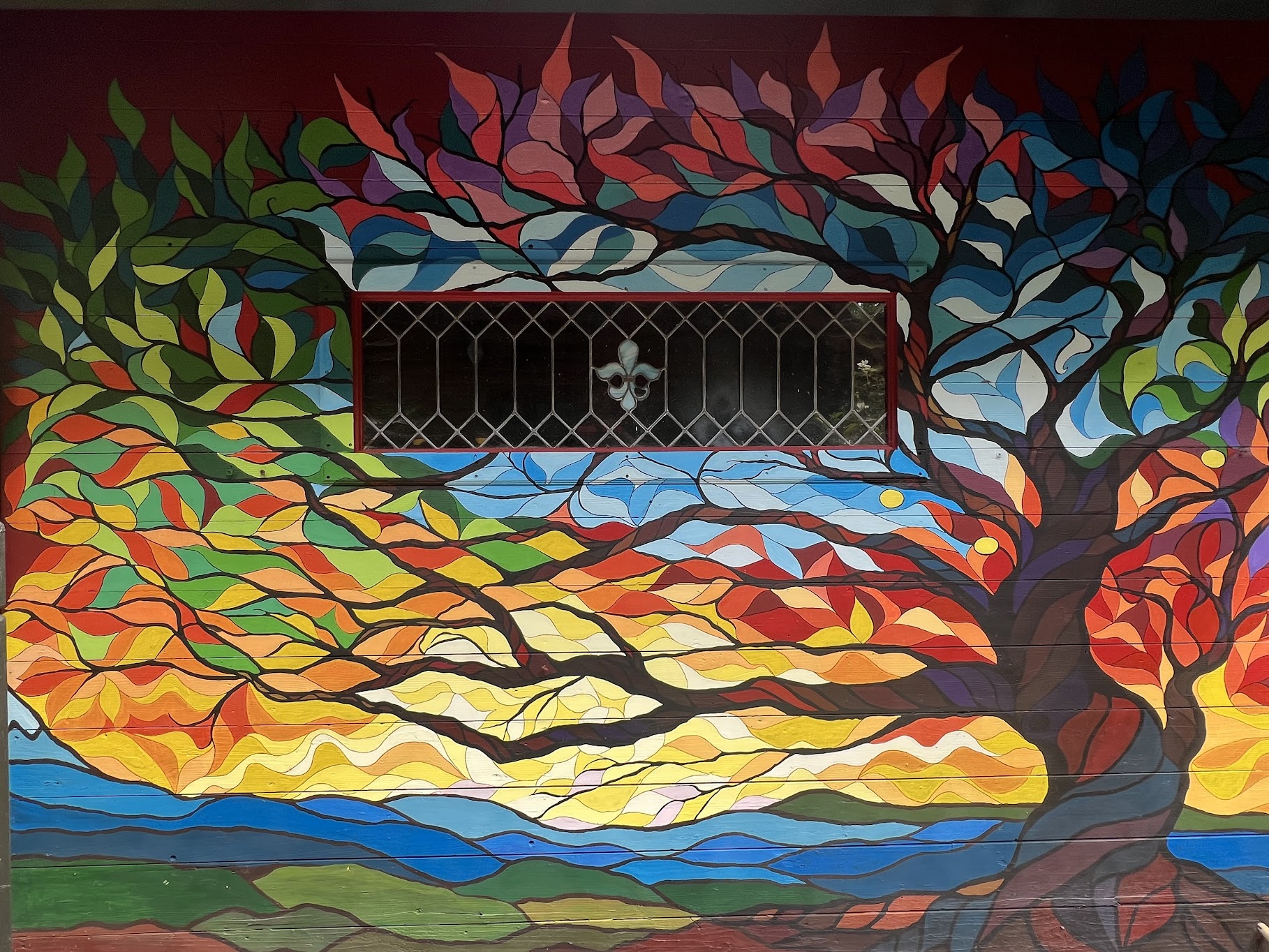 The same artist did some art inside the Painted House, that had similar colours and that cool stained glass effect.