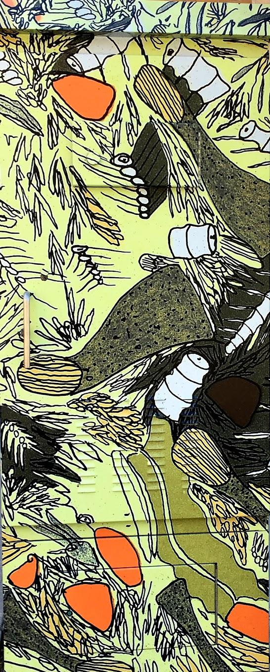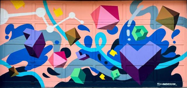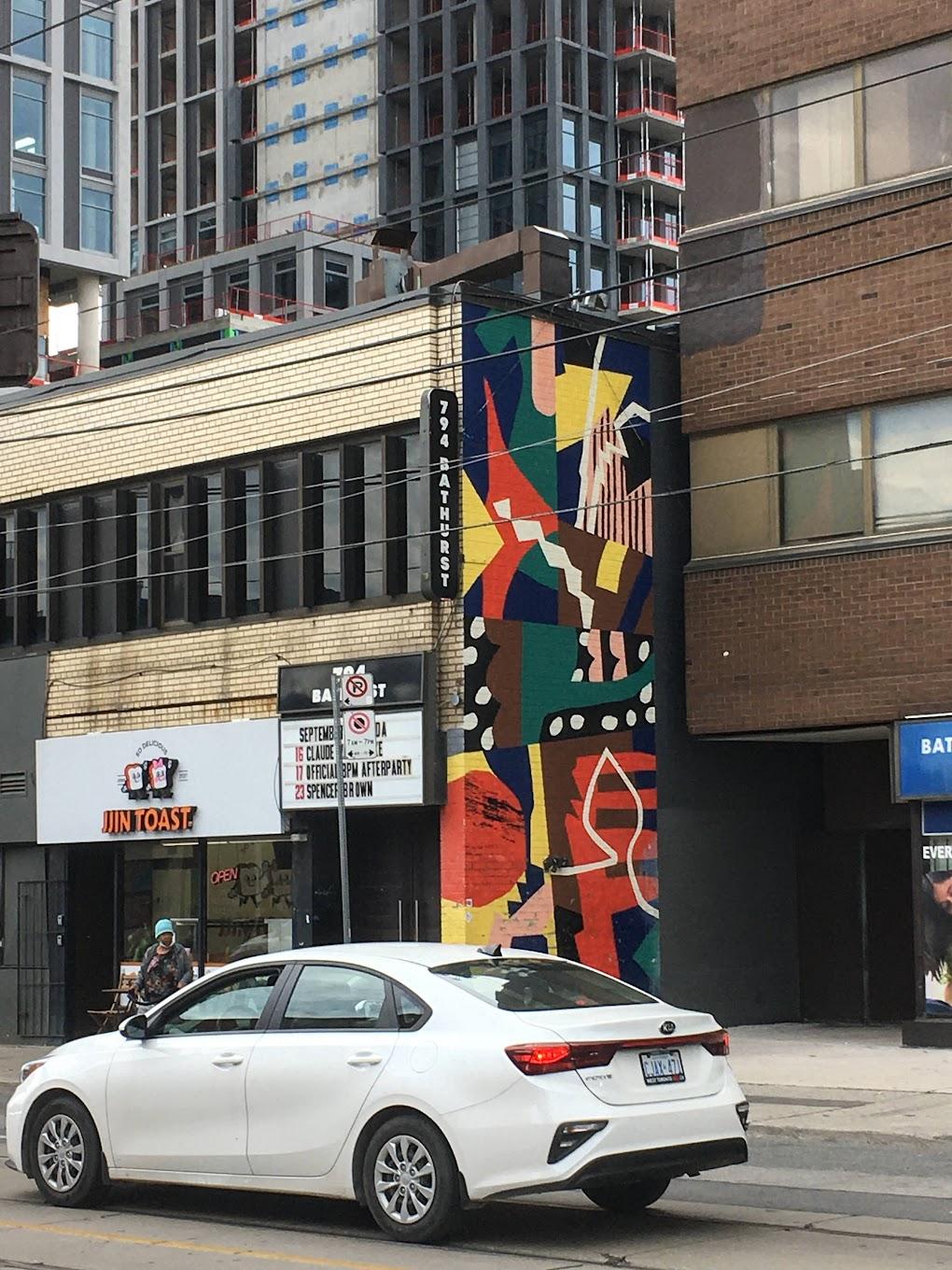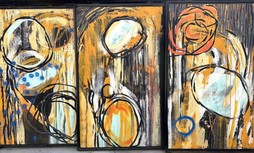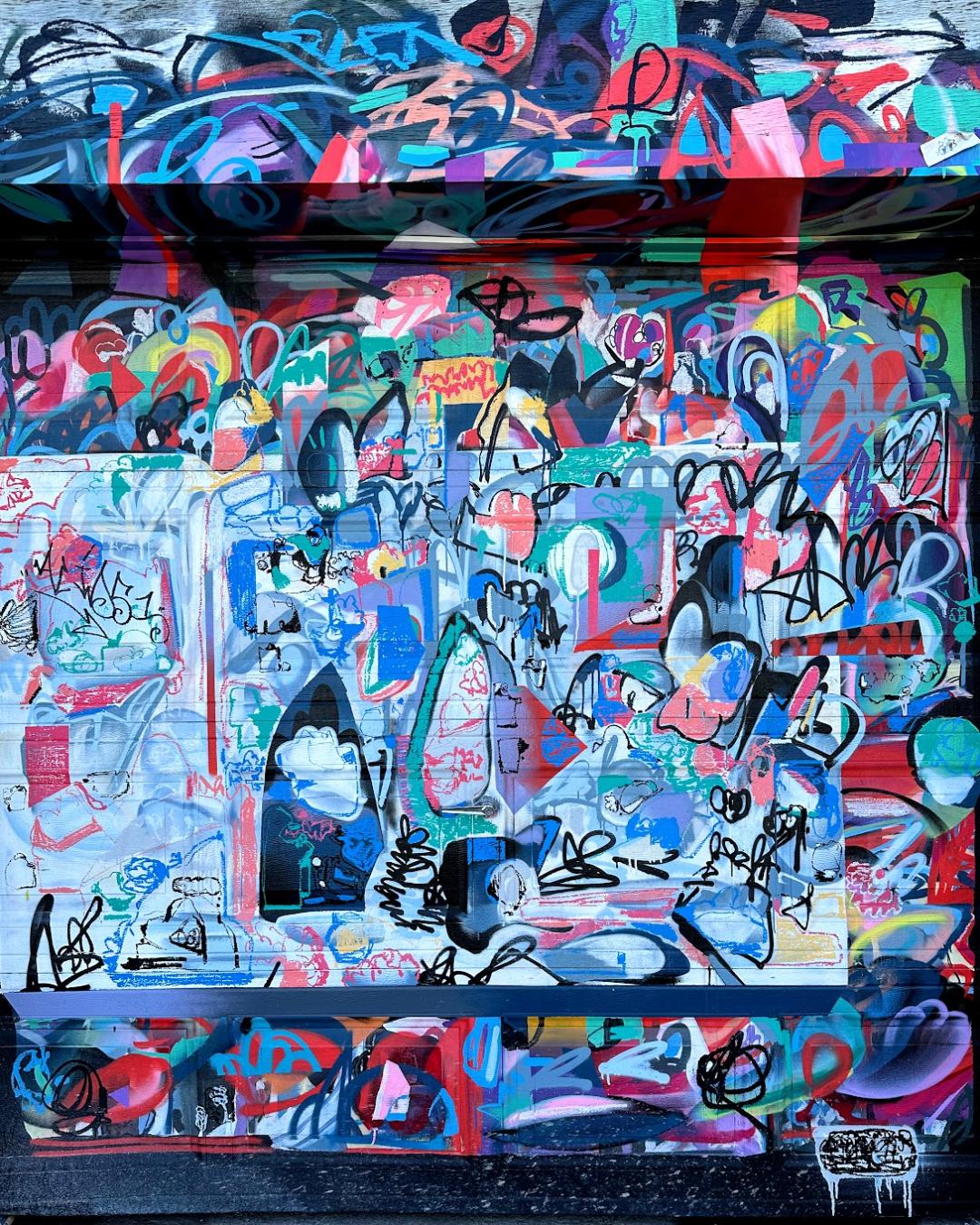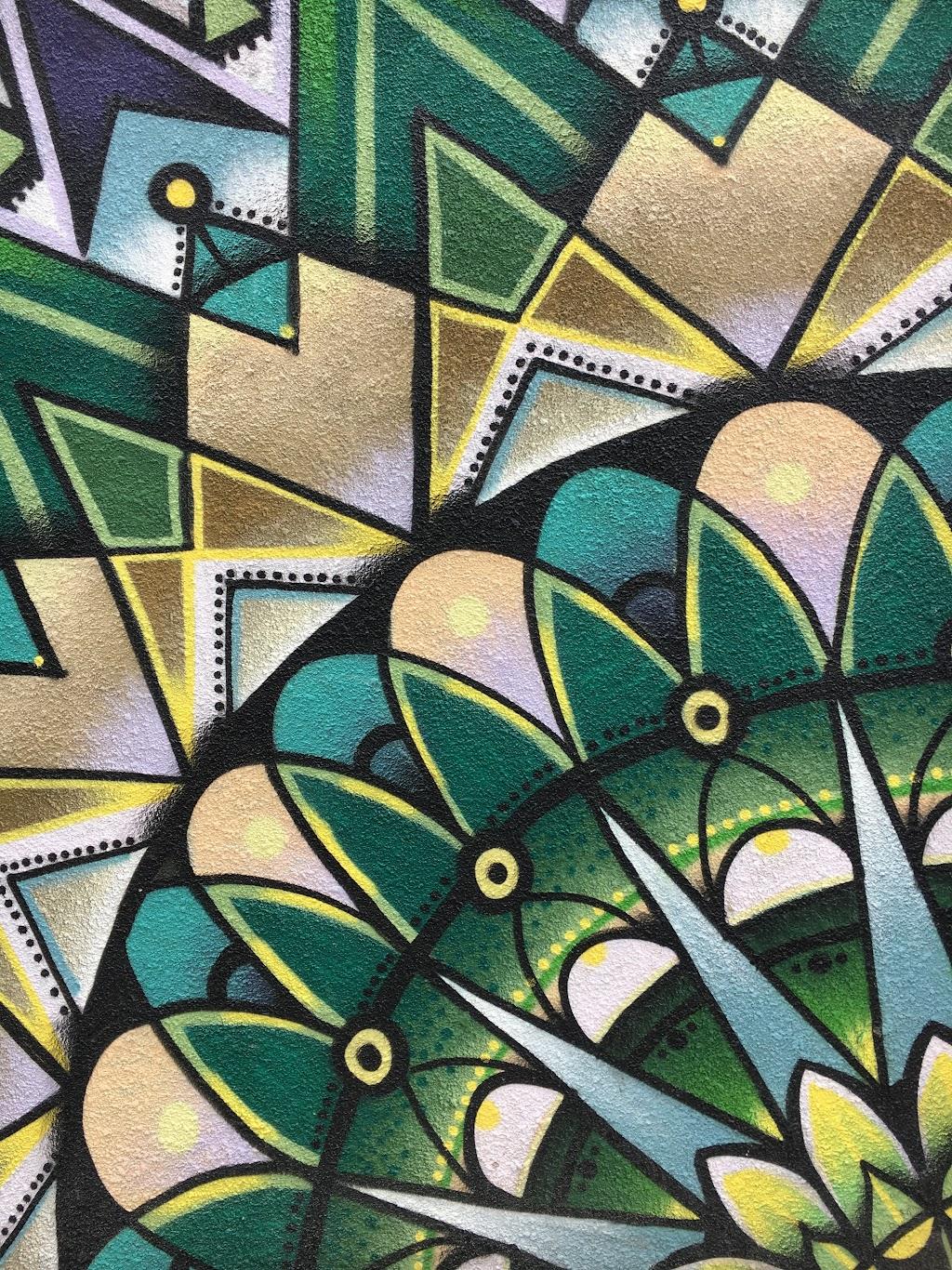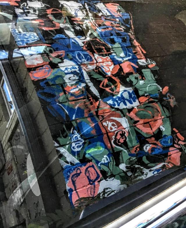 As you can see it was painted over other art. The abstract artist allowed some of the previous art to remain.
