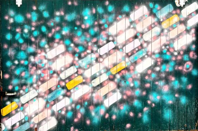 This alley fence I pass at least once a week was painted 2 years ago. I took the pic back then. The colours are still holding out.