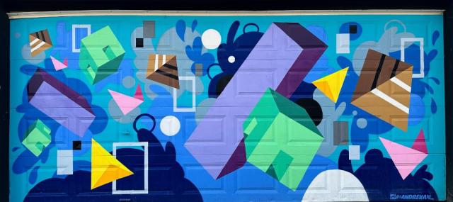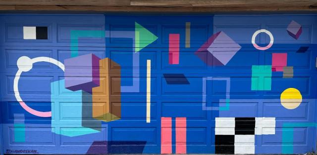 This garage door in 3, parts, makes a cool triptych. A resident came home & parked her car. It was cool how the doors opened. The 3 pieces are featured individually in the slideshow below.