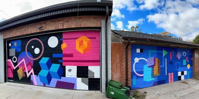 They go with the colours in this stained glass effect garage door at The Painted House.