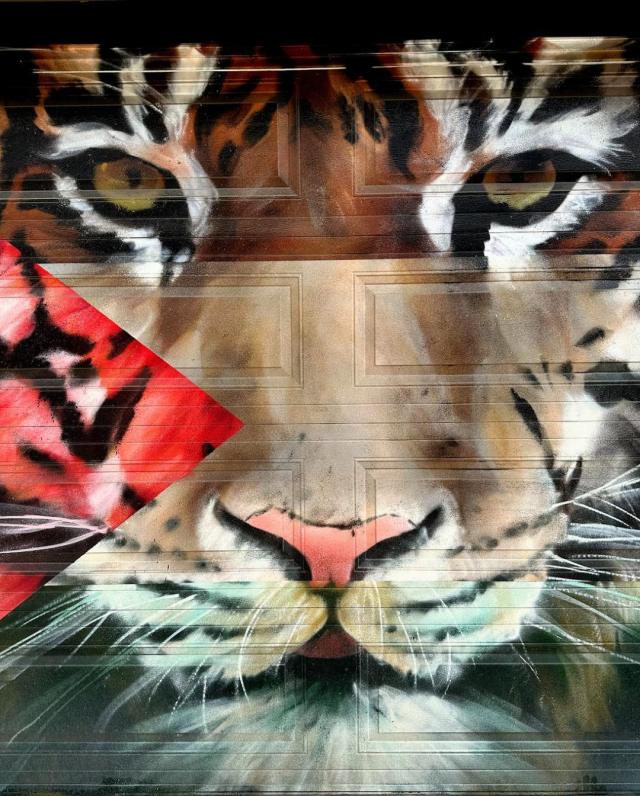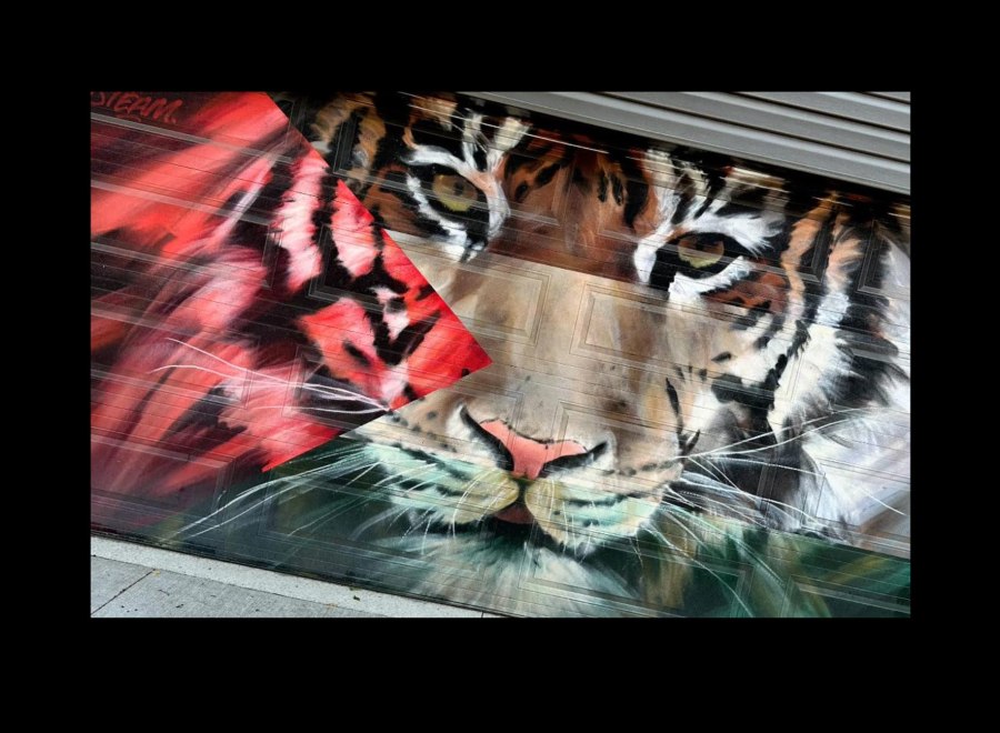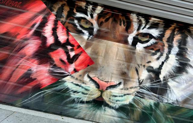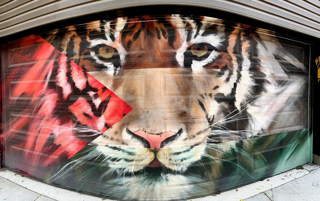 Someone told me about this new garage door with a tiger on it, in an alley near Kensington Market.
