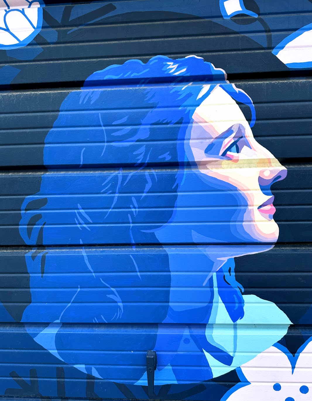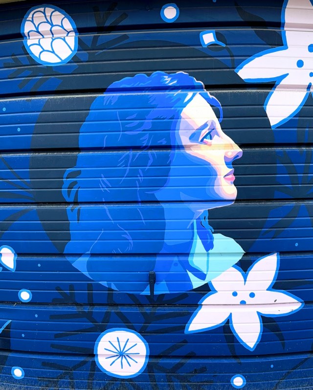 There’s art in the alleys. Sometimes paintings that remind me of my muse, a poetess, are found.