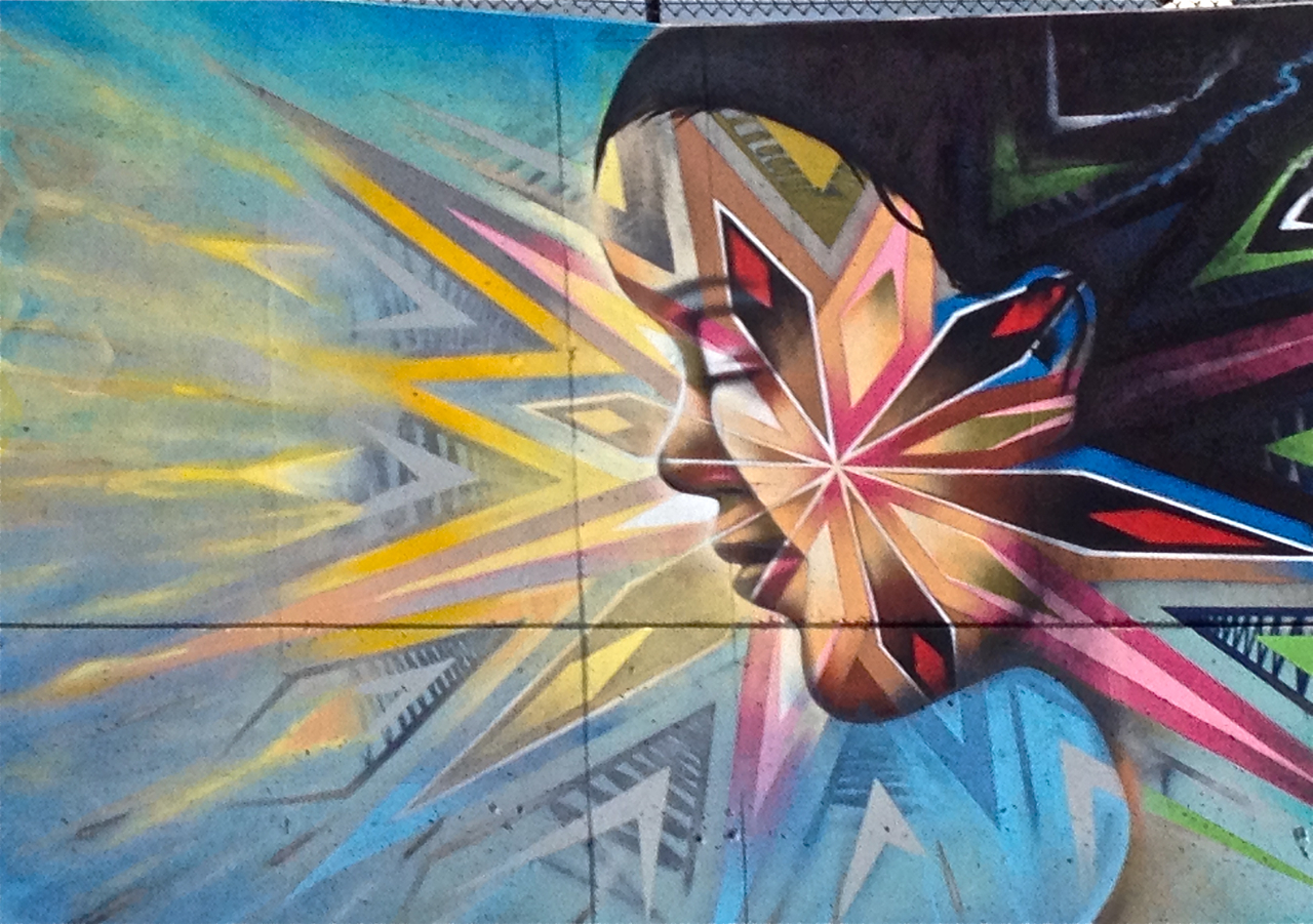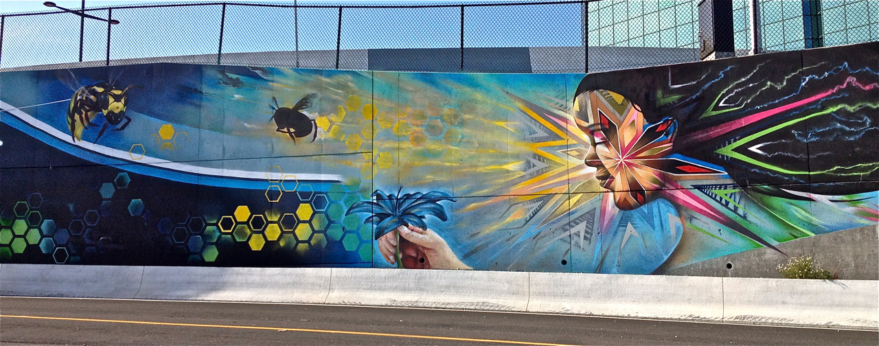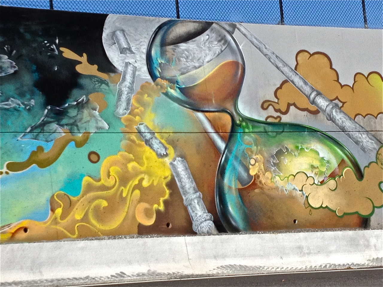 This amazing mural (unfinished) is on a very long and constantly curved wall along the free-way.