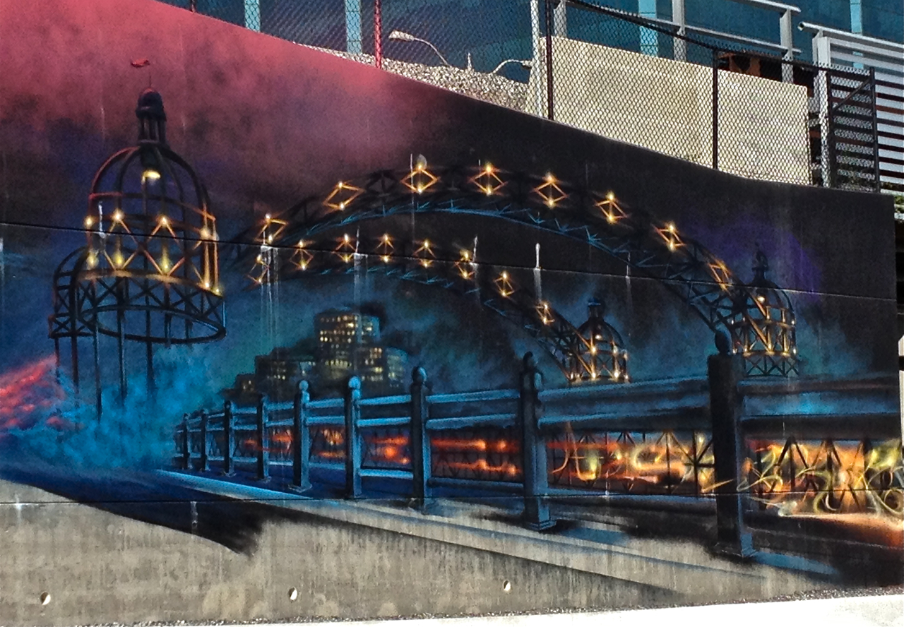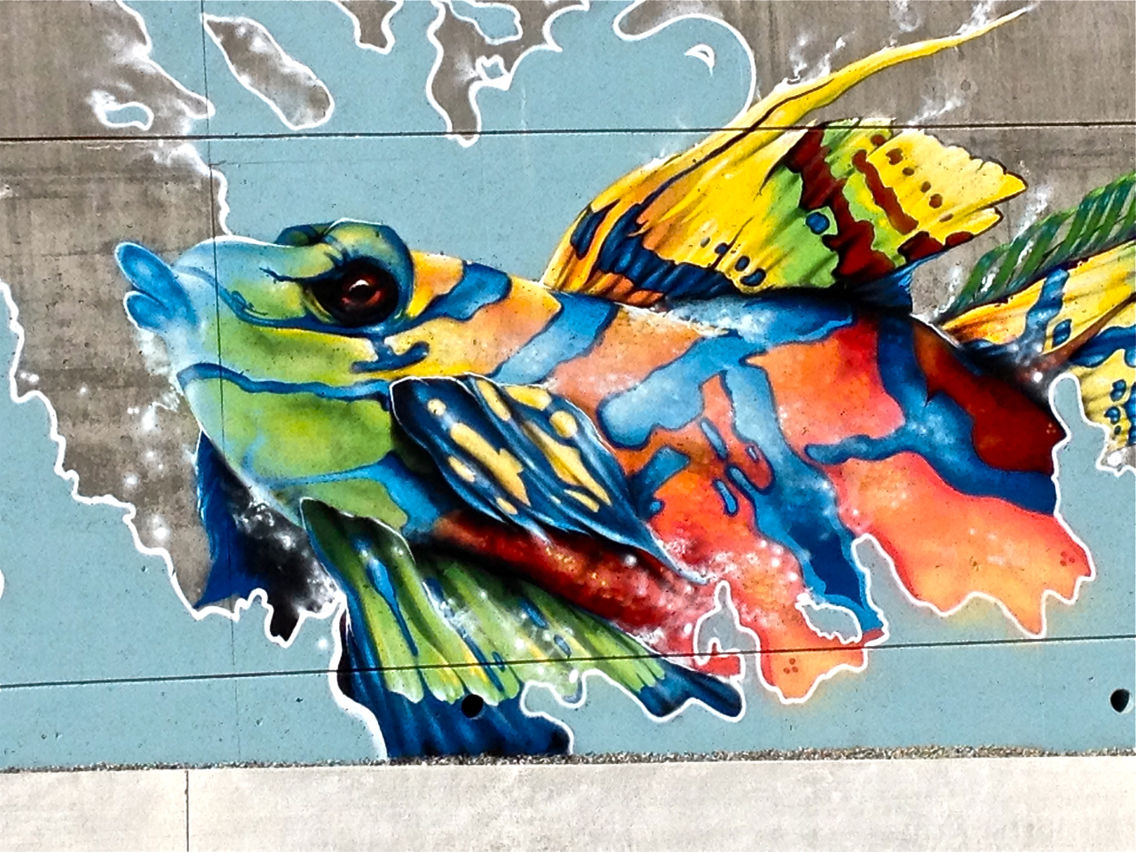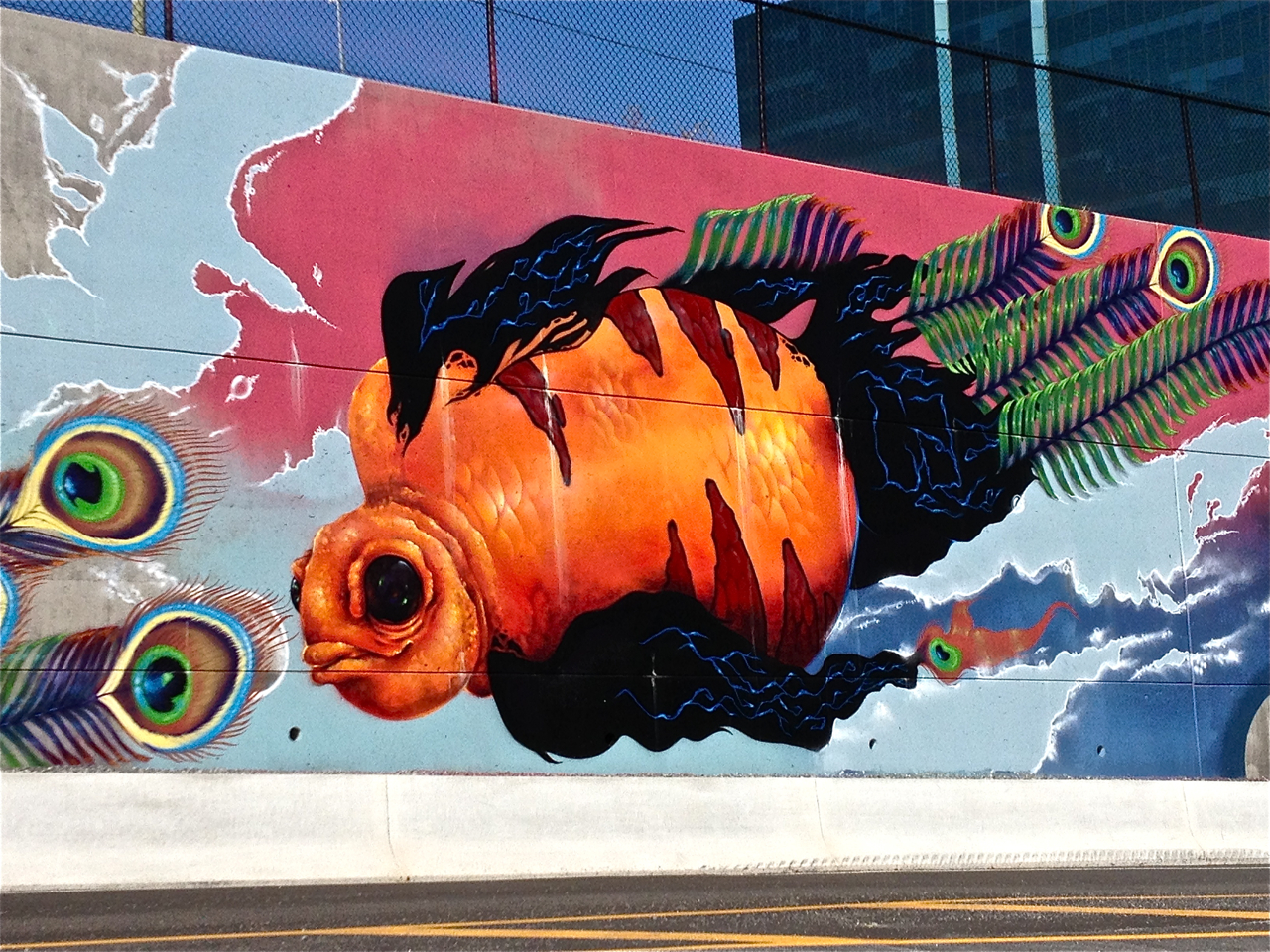 This amazing mural (unfinished) is on a very long and constantly curved wall along the free-way.