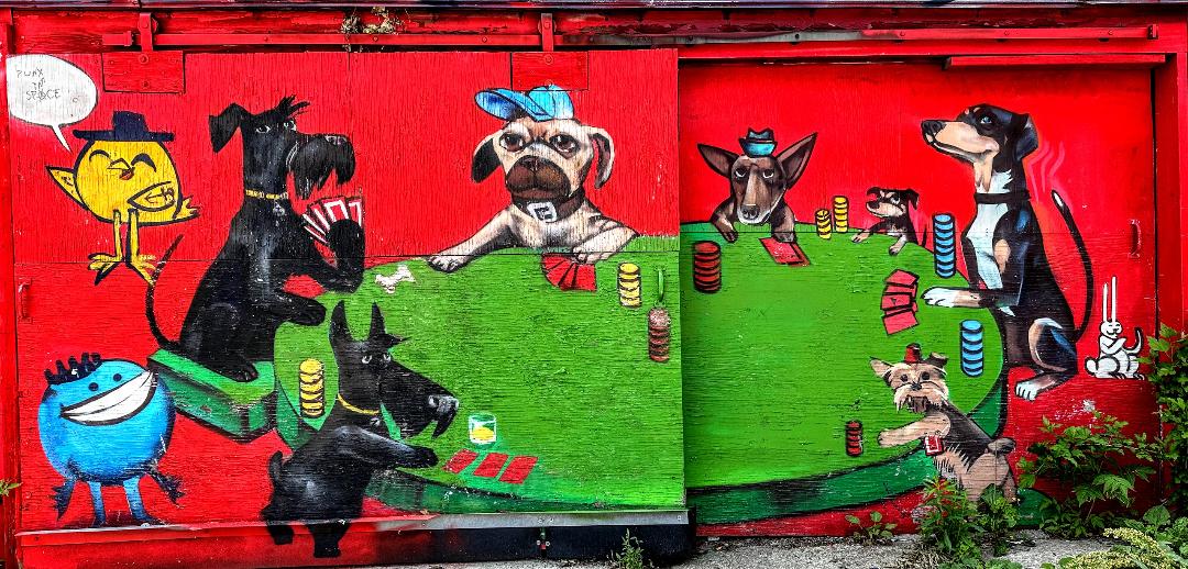 “There’s only one way to make gold rabbit coins here,” offered Mugsy. “You’ll have to play poker with the dogs! The game’s around the corner on an old red wood sliding door.”