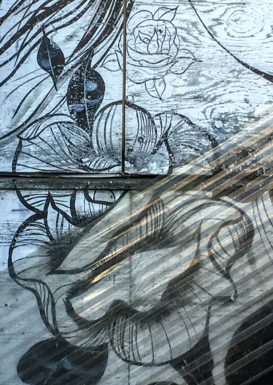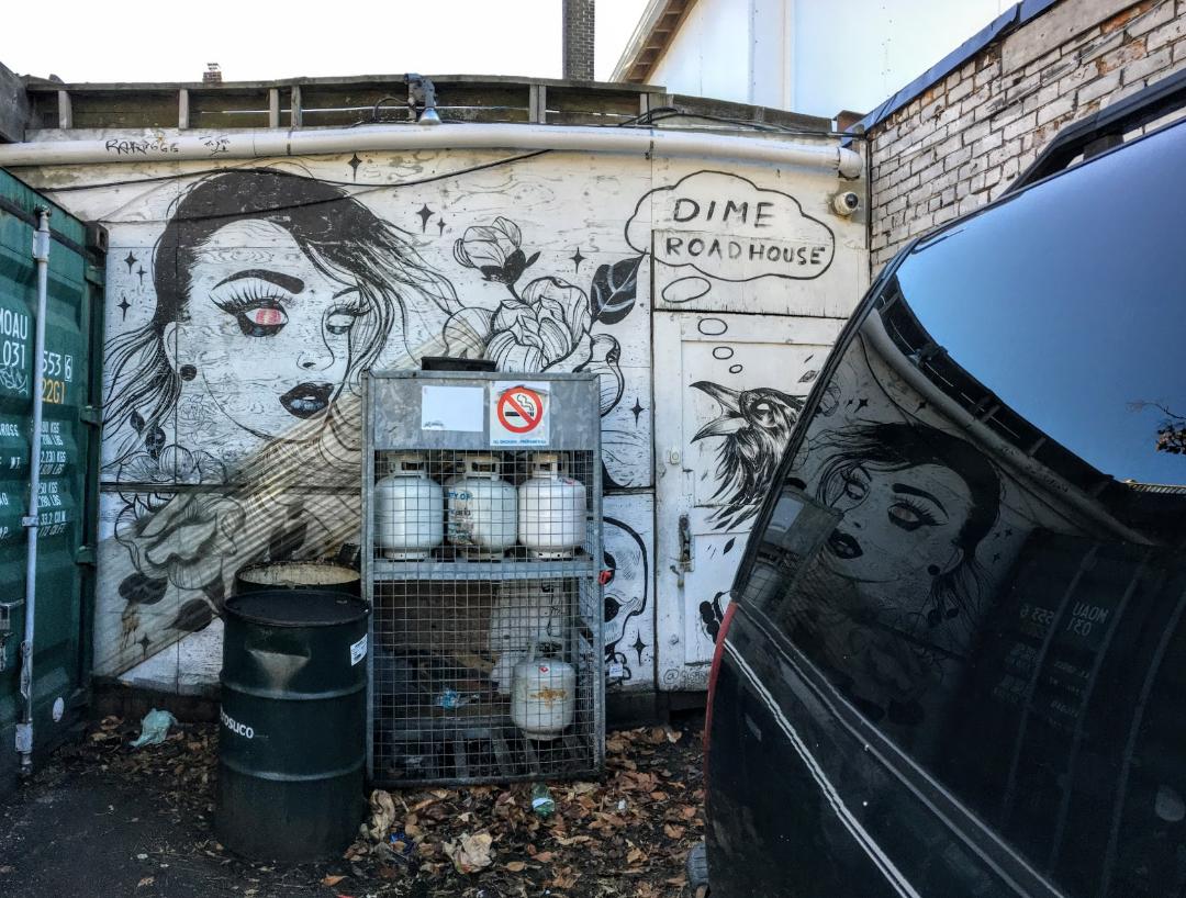 I can only go where I can walk. So, I have been going down some seedier, more neglected alleys. This beat up piece grabbed me.