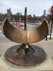 Although the ancient Greeks had sundials, this modern U of T model was of no help, as I have no idea how to read it.