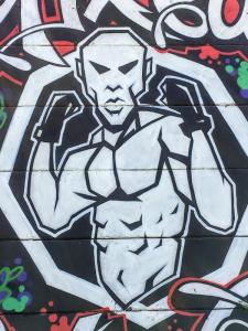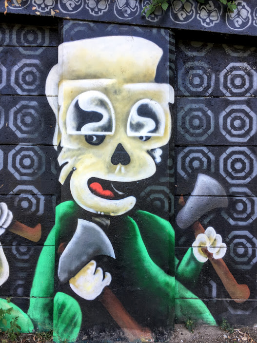 Following is a selection of street art. As in the first images of this post and in the cake and fondant art of Robbie’s, each image represents a tale in And the Grave Awaits.
