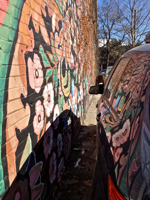 Along the Liberty Village trail, they are painting all of the old silos and hoppers.