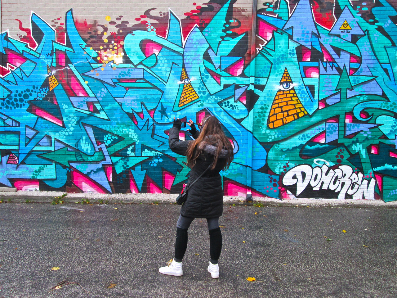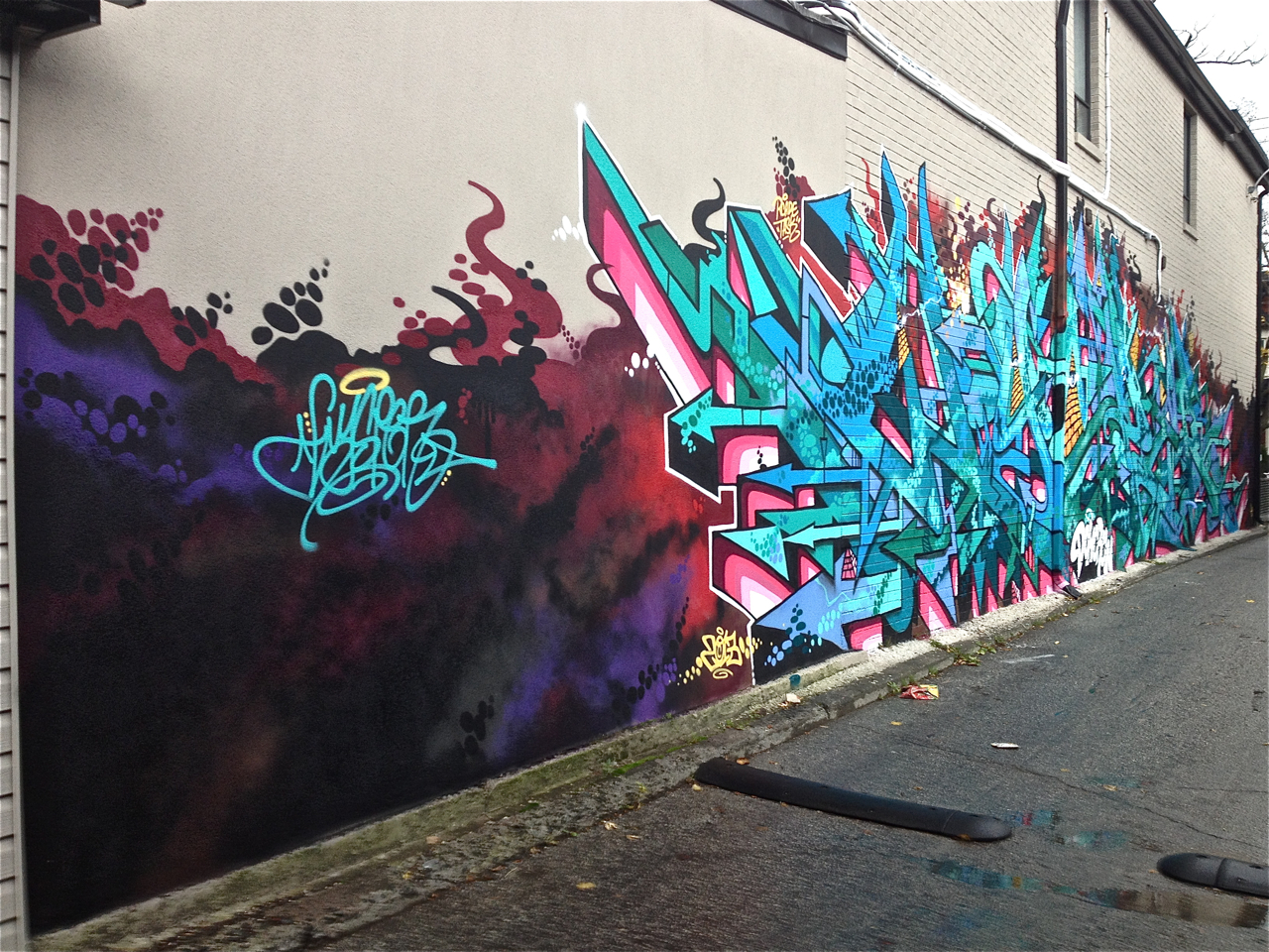 This wonderful mural by Elicser. graces the alley beside Massey Hall.