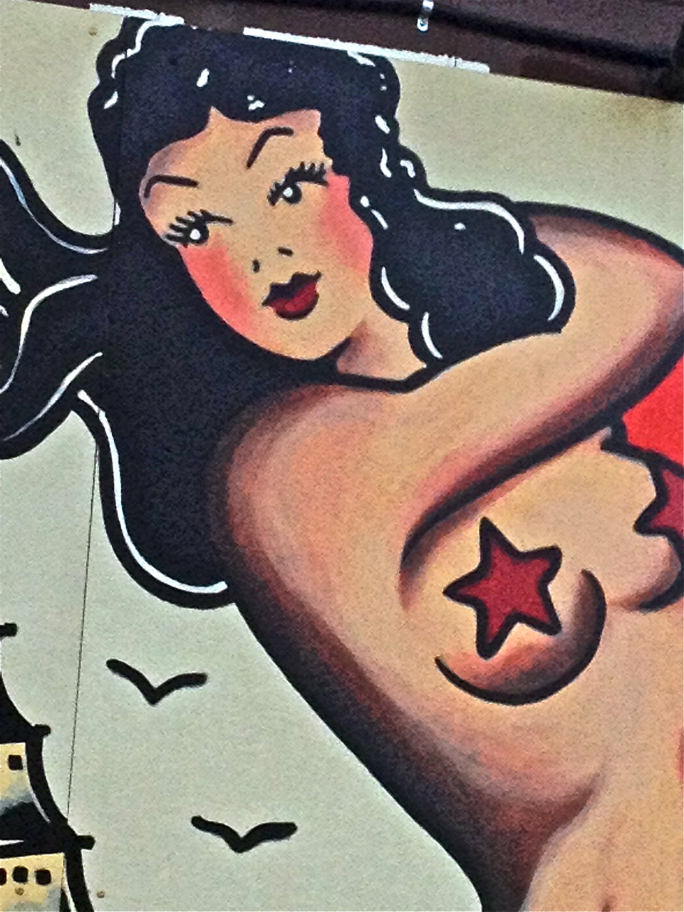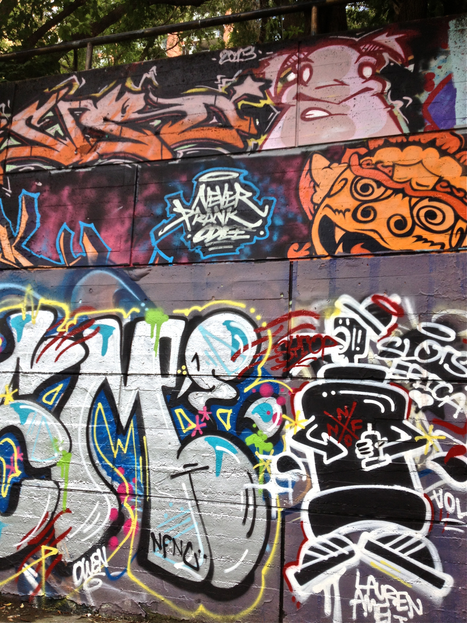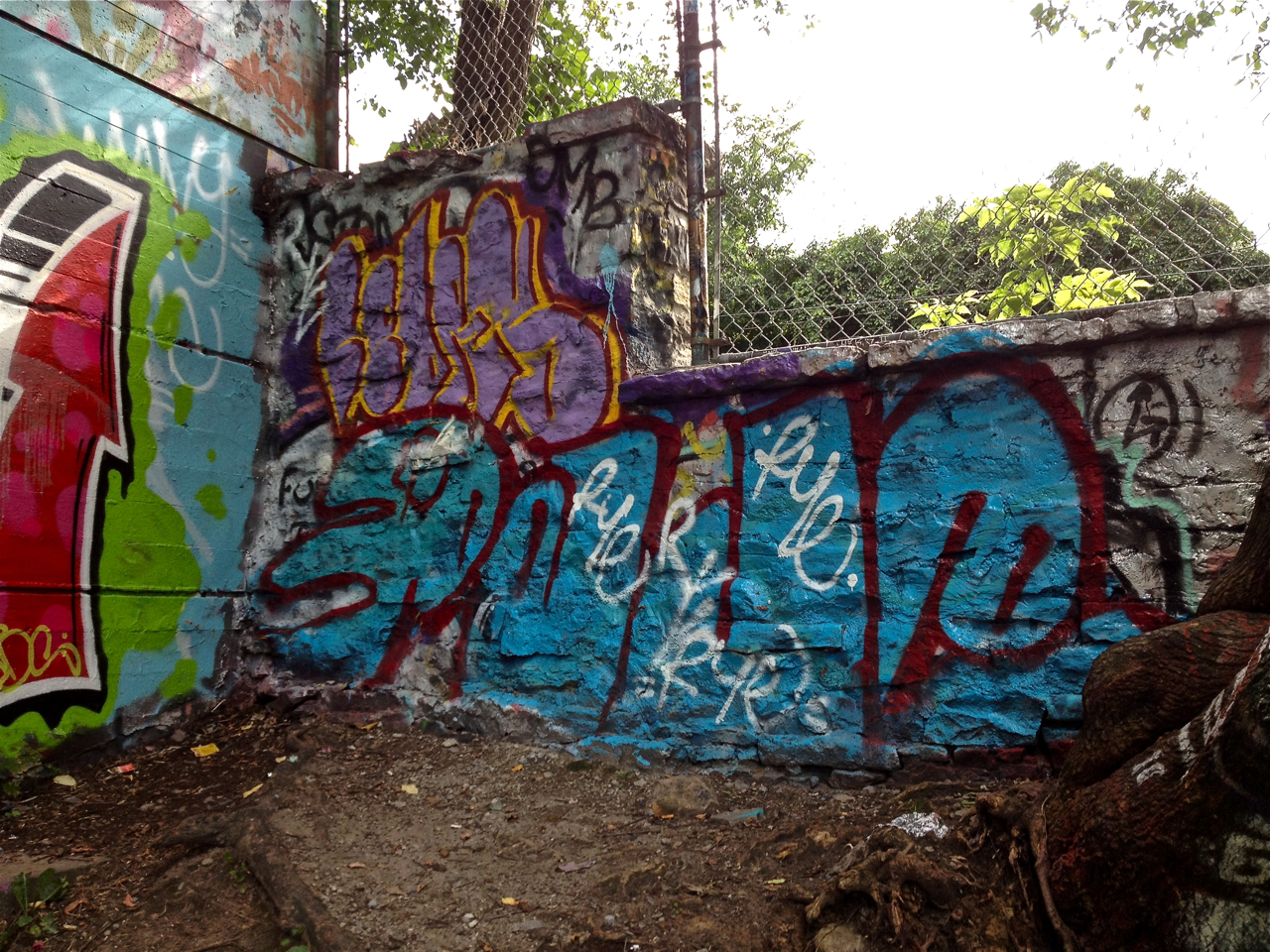 Wall decay reveals it’s been around a few years. However, other than what looks like a peeled off paste-up, the taggers have behaved.