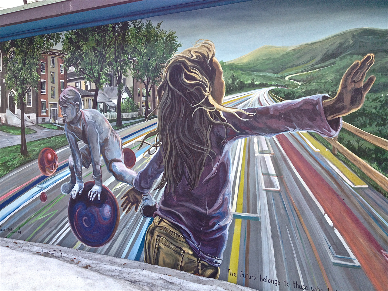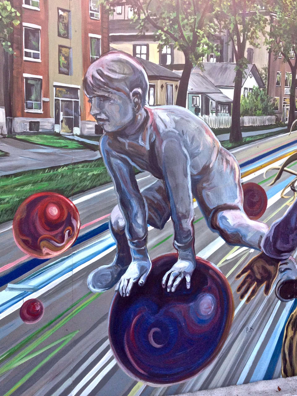 This mural features the “Golden Jet” Bobby Hull whose slapshot was once clocked at 152.9 km/h. He was the first player in the NHL to sign a million dollar deal.