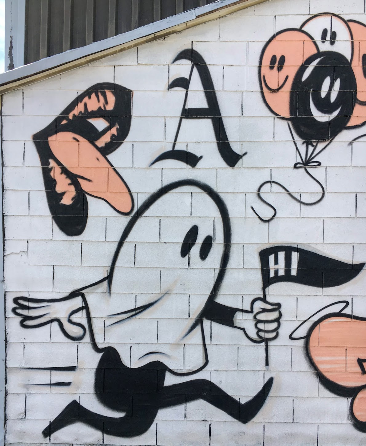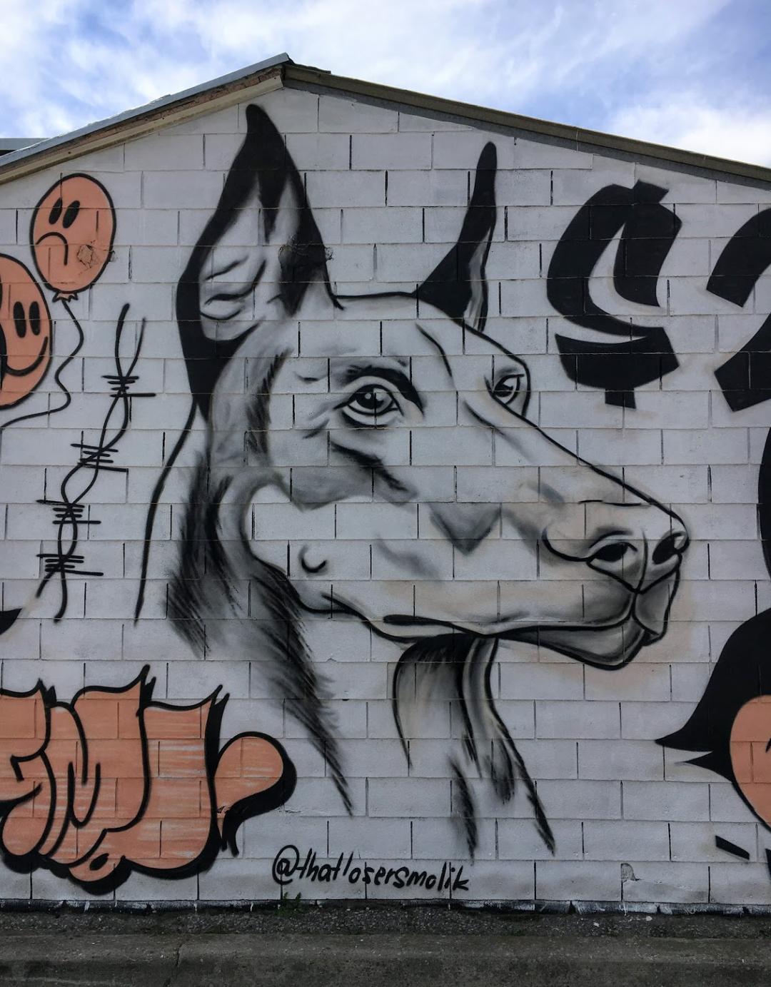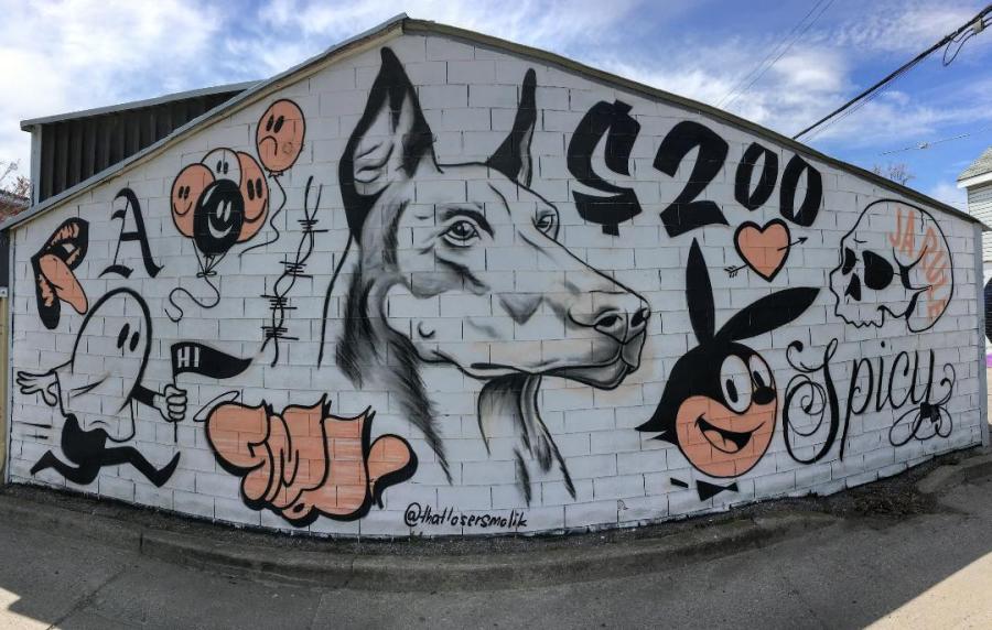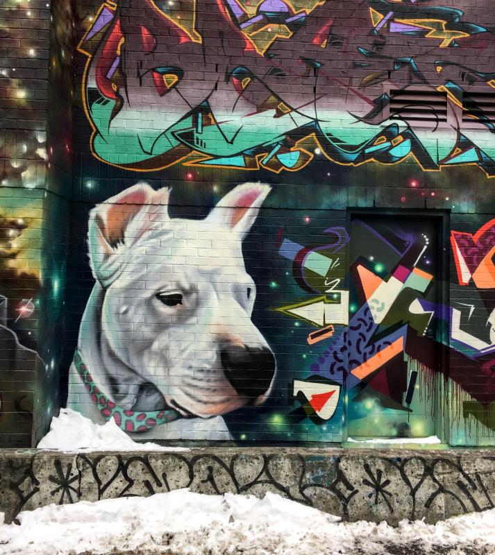 “Many Graffiti dogs, like this St. Bernard, live in the alleys.”