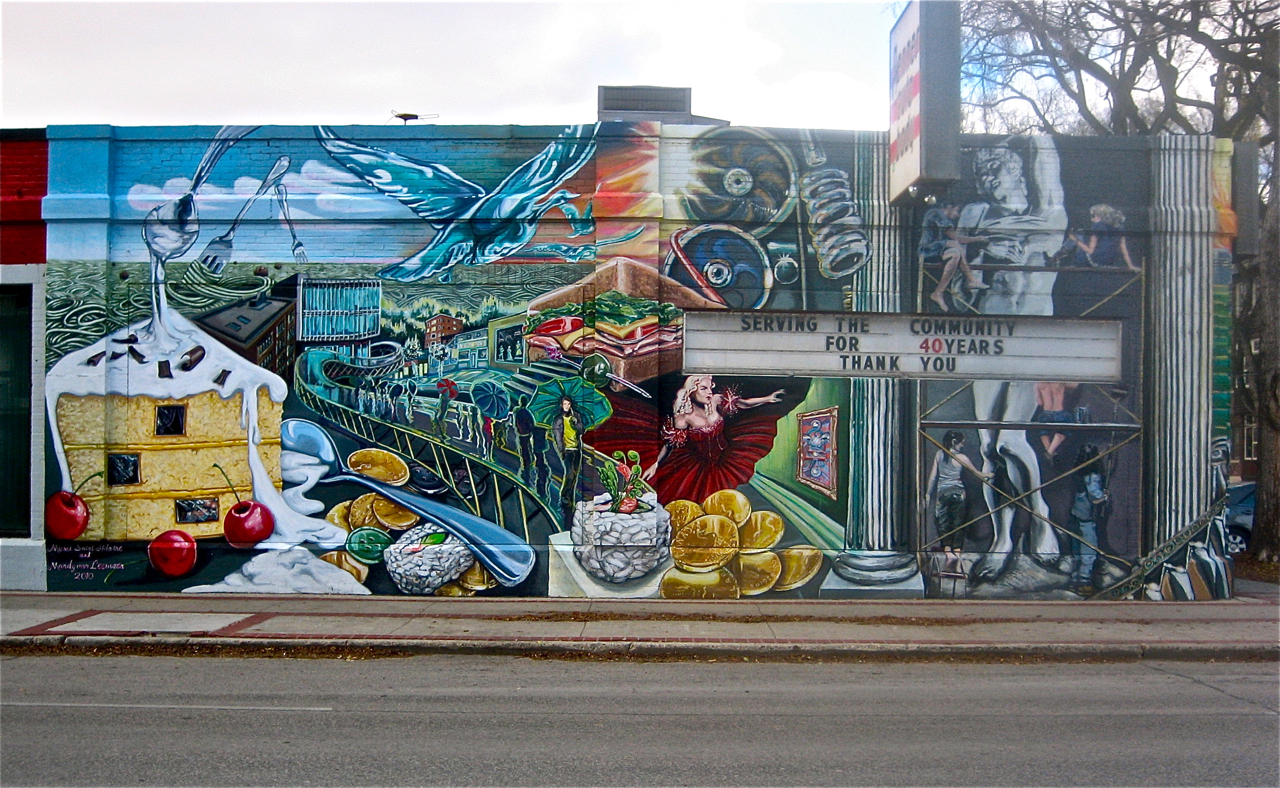 This mural by Larry Rich graces an outer wall of the “Long and McQuade” store in Winnipeg. Here’s the rest of it.