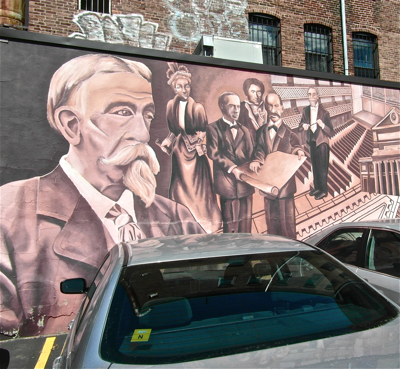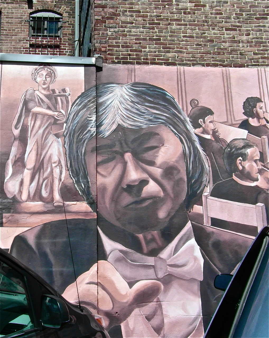 It was impossible for me to capture images that are 22 stories high, but I made a stab at it. To the left, and above Oscar, we have B.B. King, who played a lot at The Colonial (a long gone fave spot for blues and jazz)