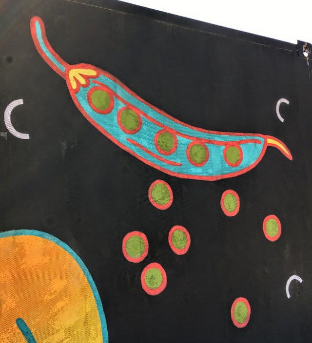 The collection of 4 at the rear of the room is sustainable art from an earlier show. I love this. Some of the items include: