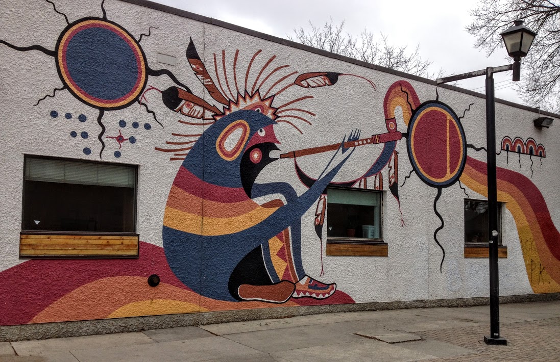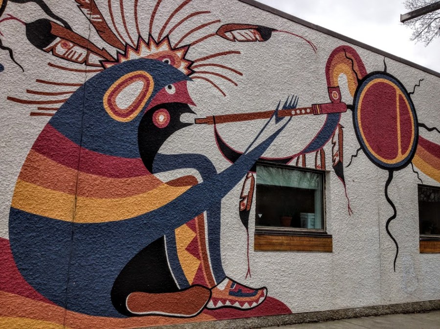 In 1985, the year after his death, 2 murals were painted in his honor. Based on prints of Jackson’s, they have since been restored and repainted. Read all about the Jackson Beardy Mural