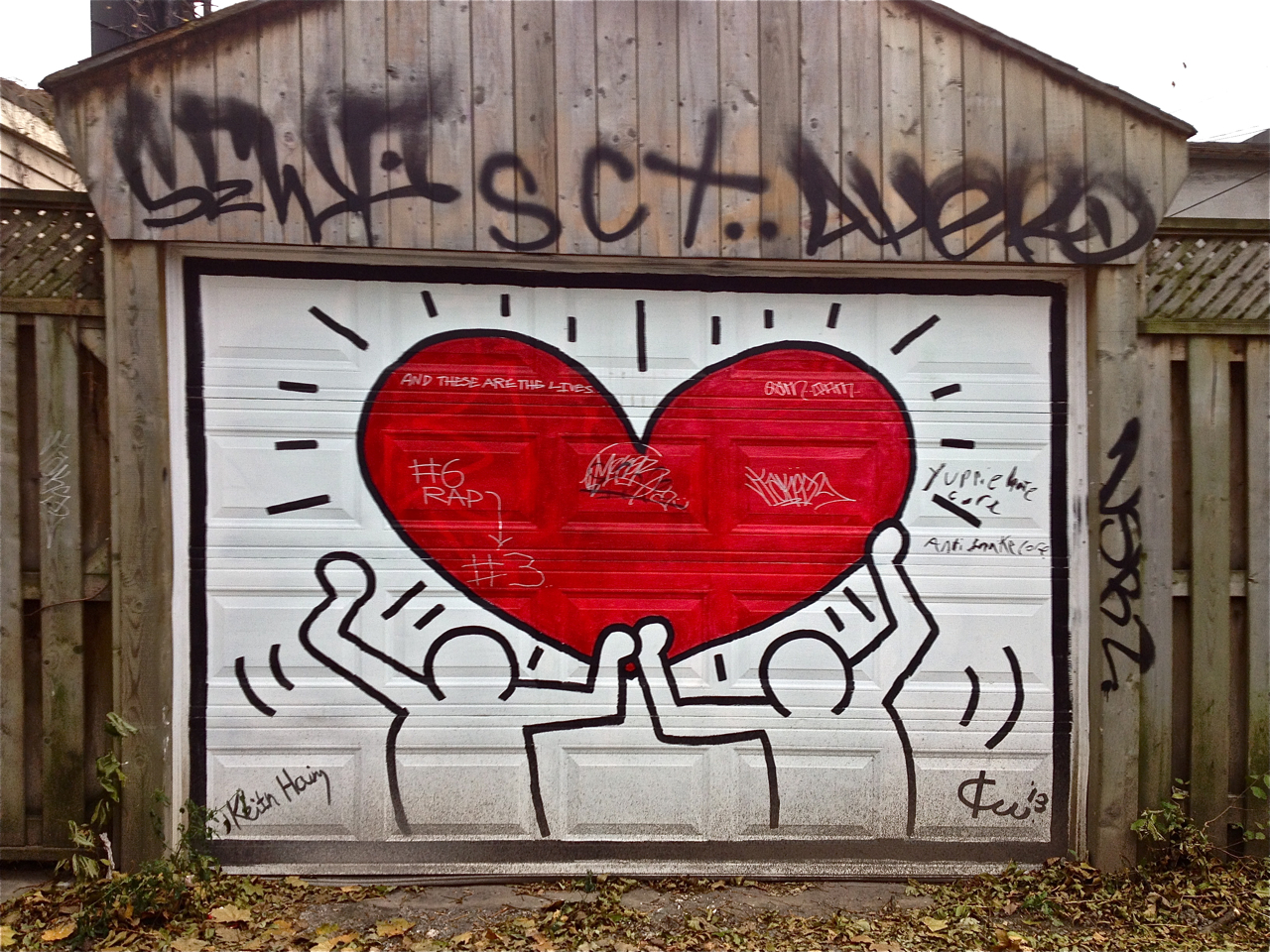 Viewing South to North in the Ossington alley just N. of Queen St. W., this sweet bit ends at the corner.