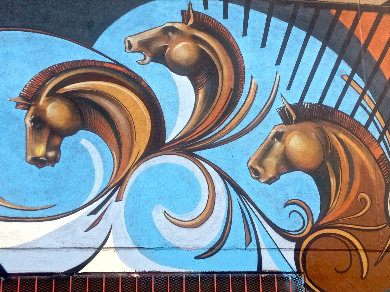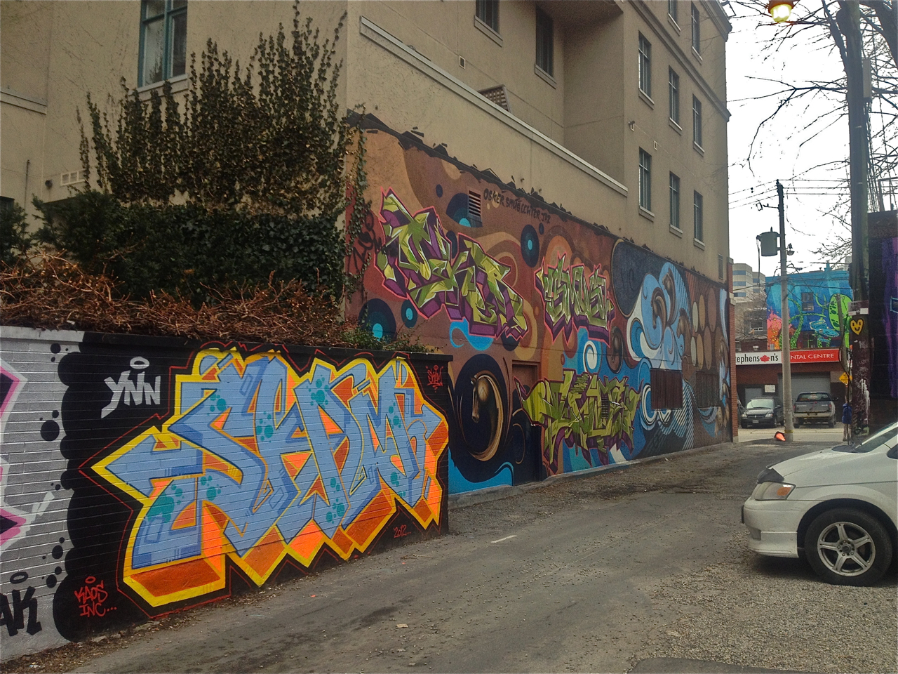 This freshly painted mural lavishes along a wall in the parking lot of the Parkdale Public Library.