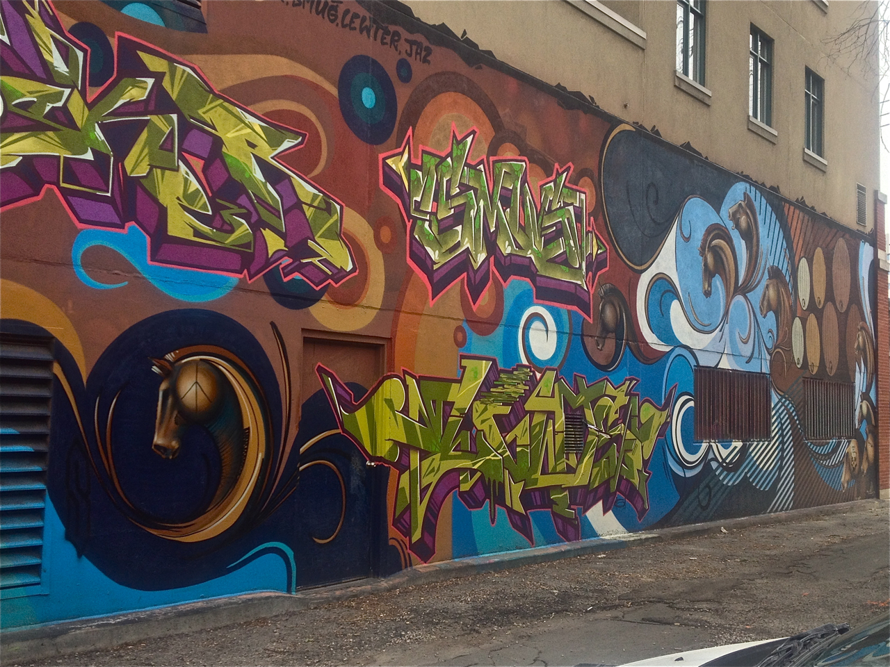 I chose this mural tonight for Crafty Bunch who likes to Google map the locations of the Graffiti Art and travel there virtually. There are at least 2 views of this mural available to her.