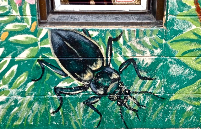 She’s the feature of a gorgeous graf mural on Niagra Street at the corner of the Queen W. alley S. side.
