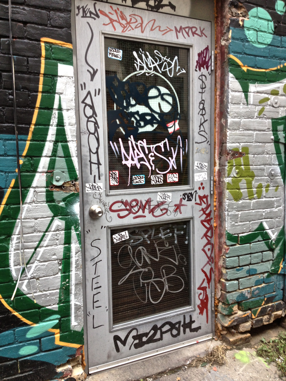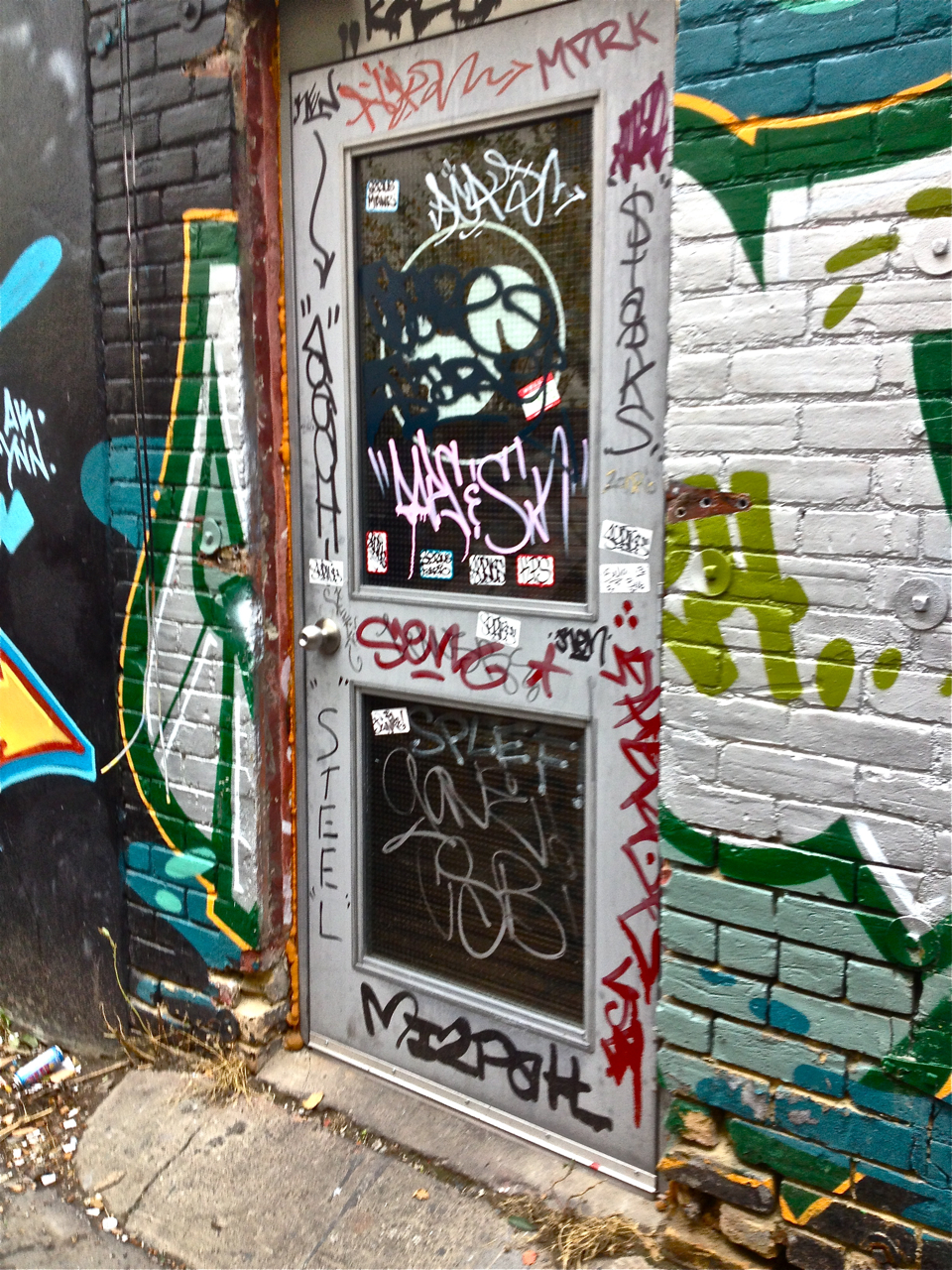 Back alley south of Queen Street West between Spadina and Bathurst, Zena & I documented some rich doors.