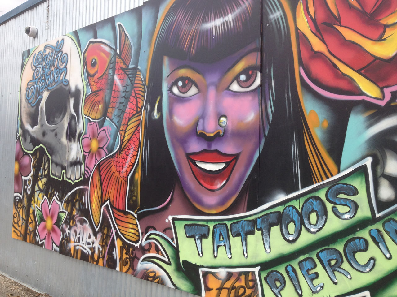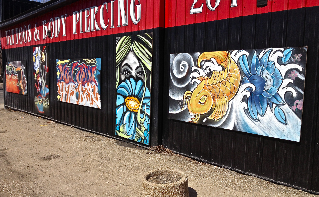 You can visit Mike on his Website www.murdersnest.com .. where, if you’re in need of some gorgeous art on your building or on your body, he has a Contact Page.