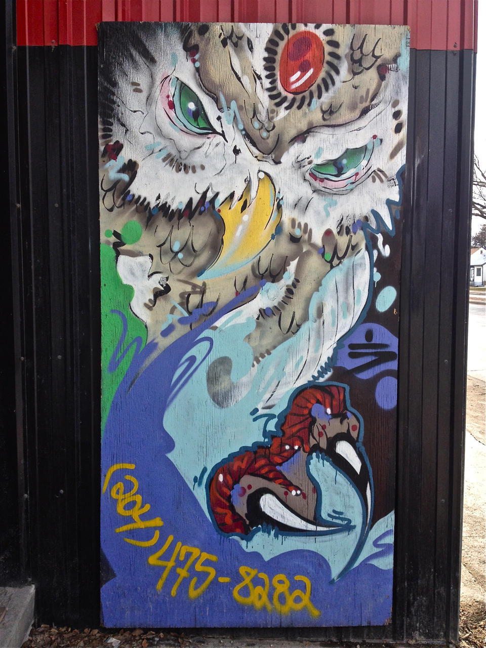 Below, is Lester. This was one of the very first pieces of Street Art I ever encountered in Winnipeg. However, Lester was seriously obscured by industrial trash bins. Two years later, I returned, only to find a good portion of this amazing work had eroded due to the harsh Winnipeg Winters.