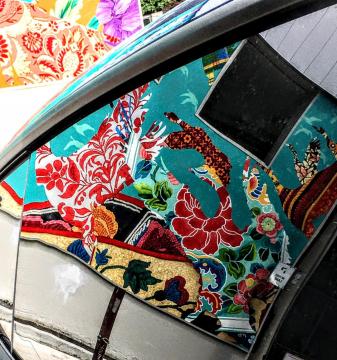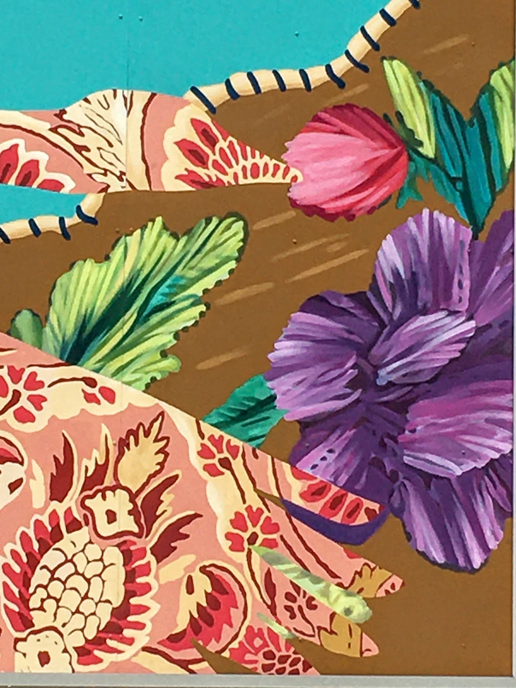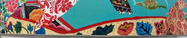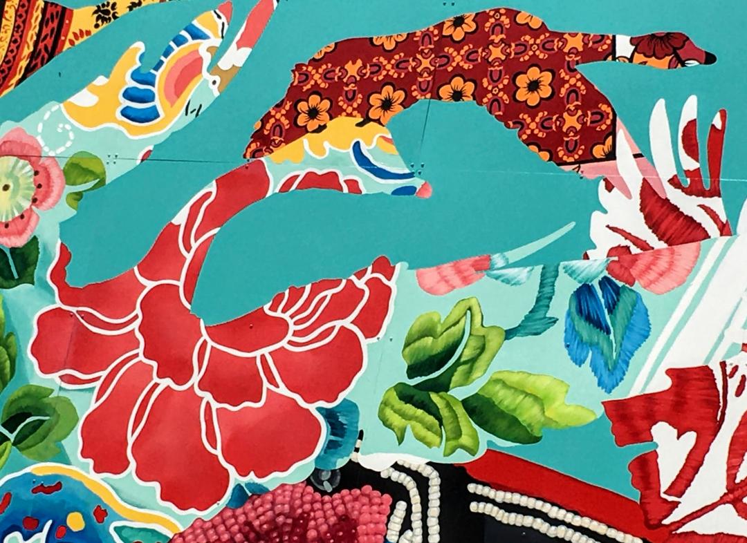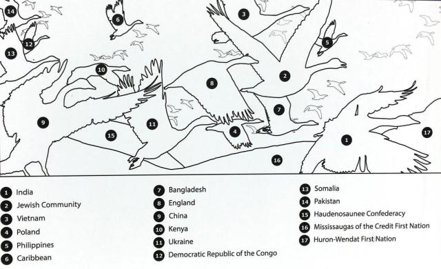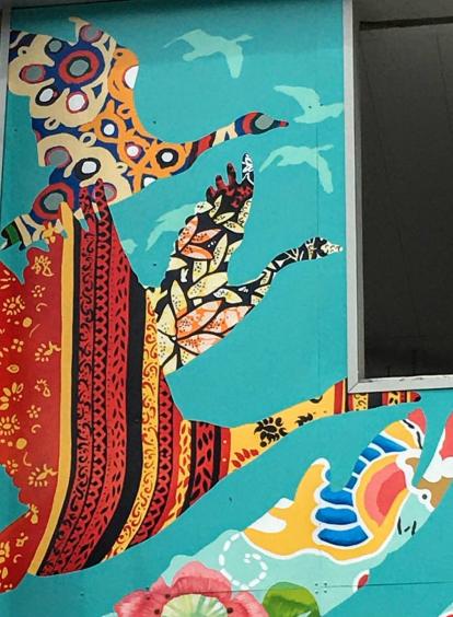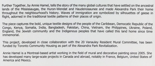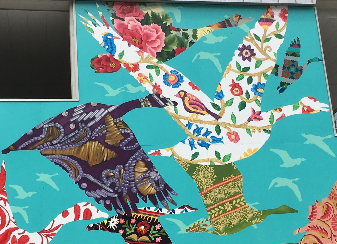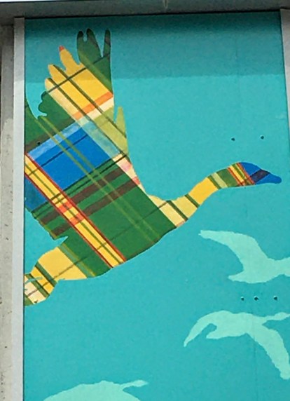 Okay all geese are not Canada Geese, but all geese are geese (be they a goose or a gander). There are 17 fabric patterns from 17 different cultures in this mural. Before I looked at the legend, I found 14.