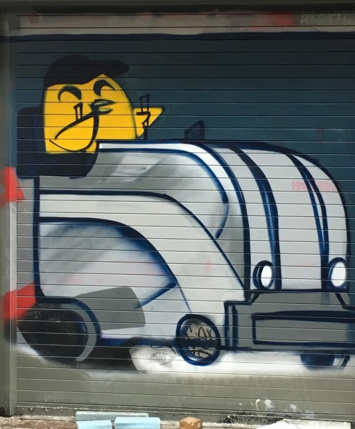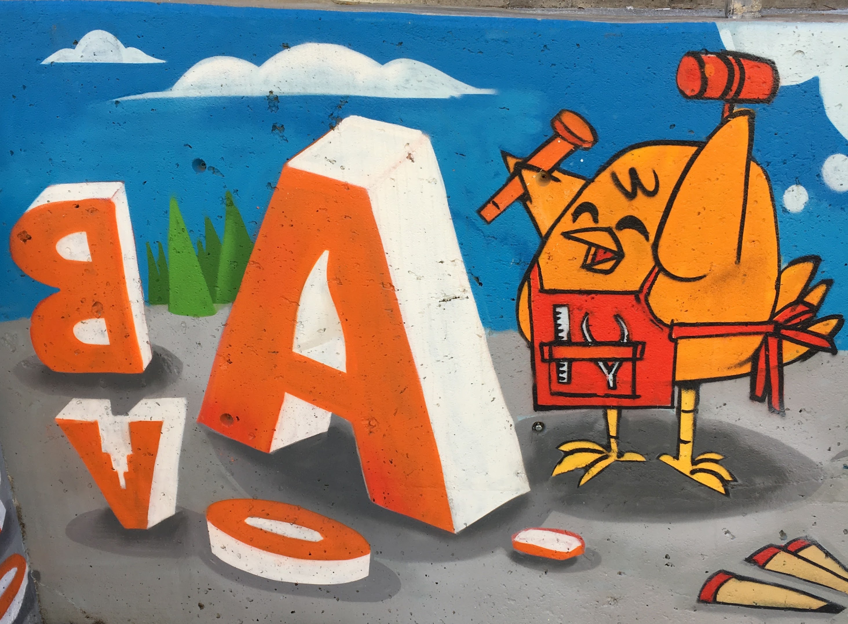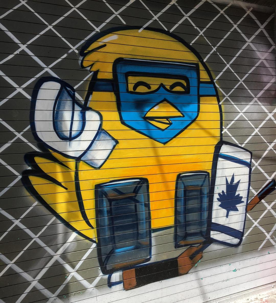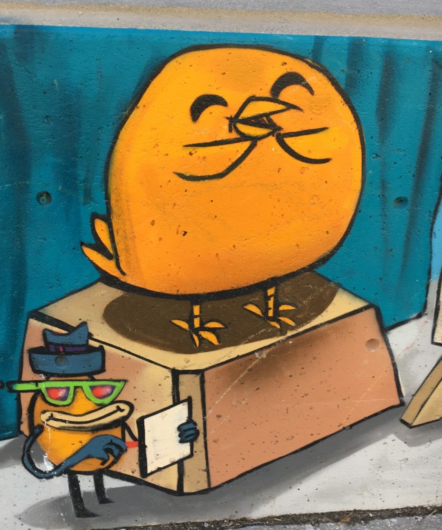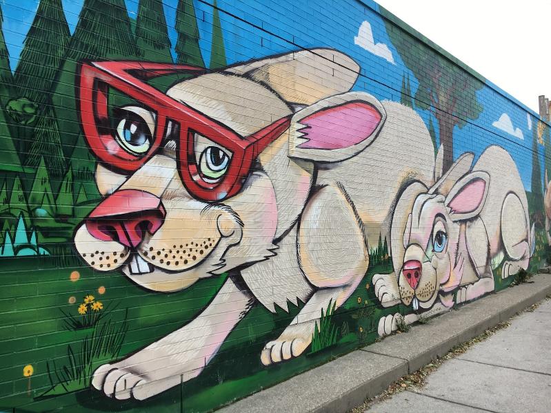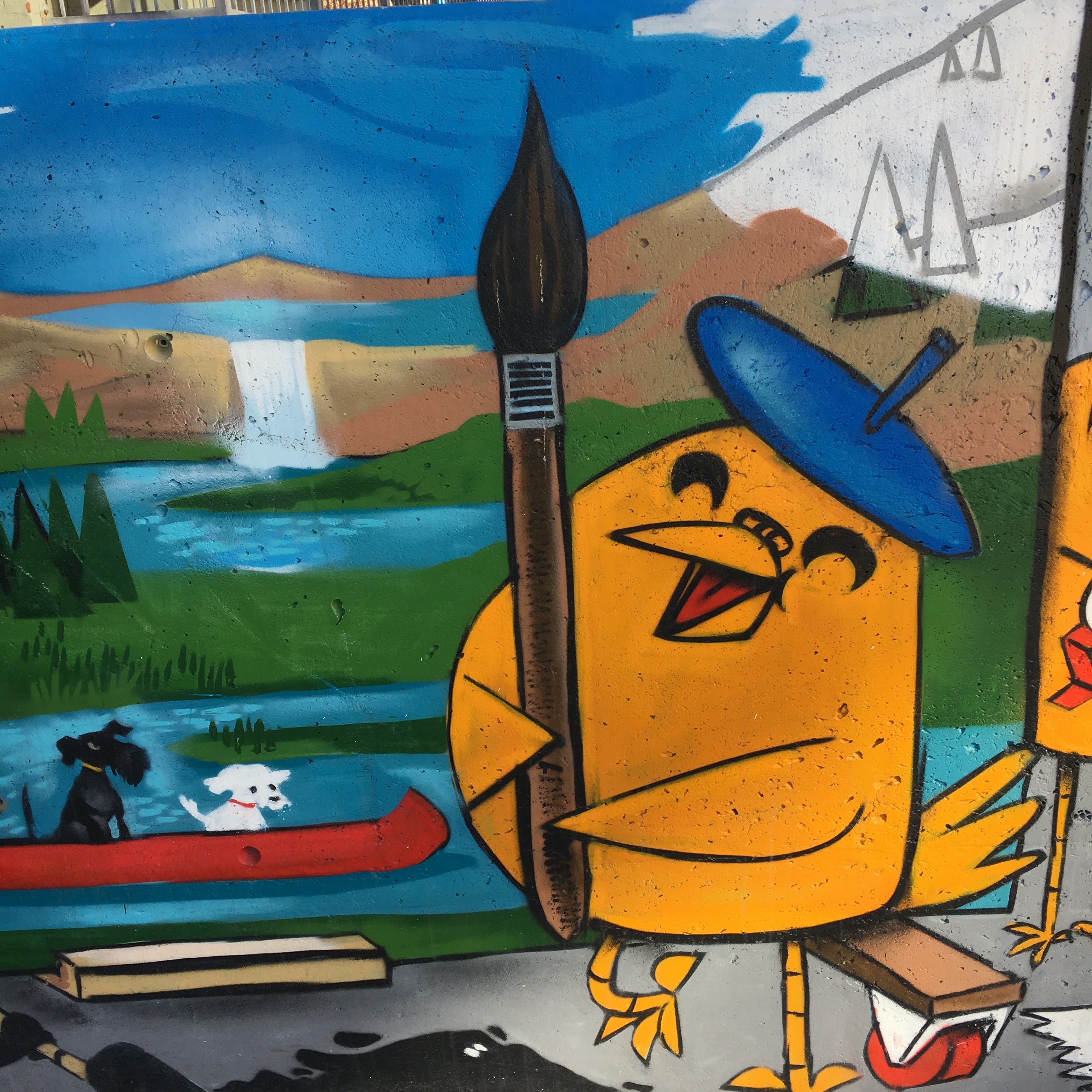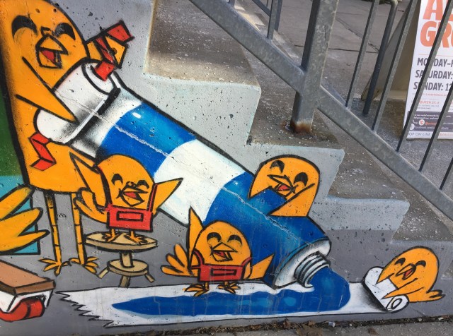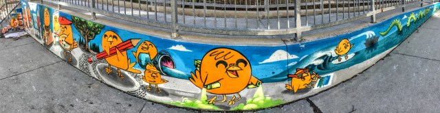 Anyway, turn the corner of the building to the east side, and there is a full out skating mural, with all of Uber’s pals.