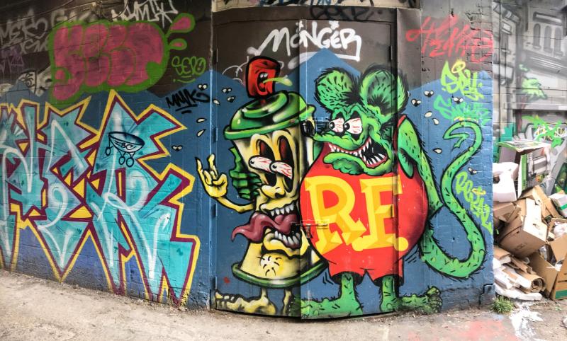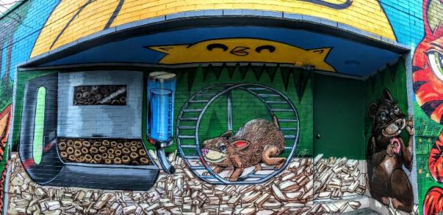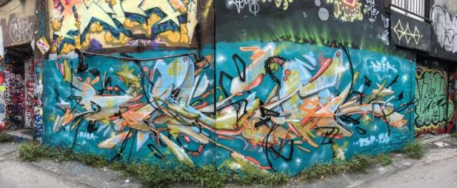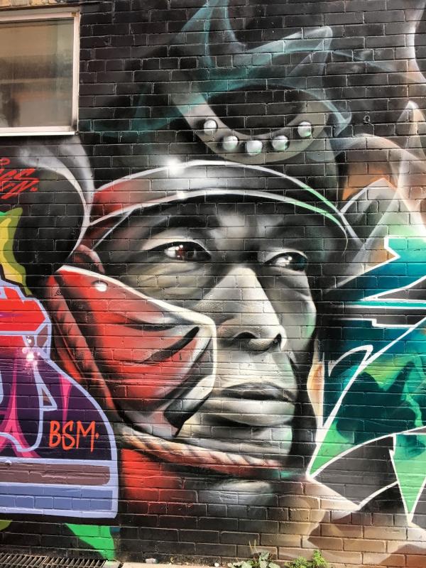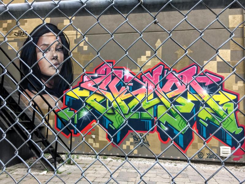 This mural was on a south facing wall in Graffiti Alley.