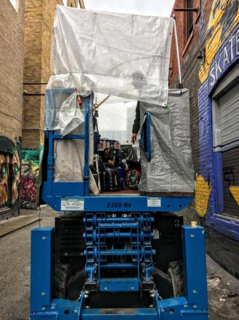 Above is the lift on the day I went in it, massive thrill! There are black lights installed over the mural, which come on at night.