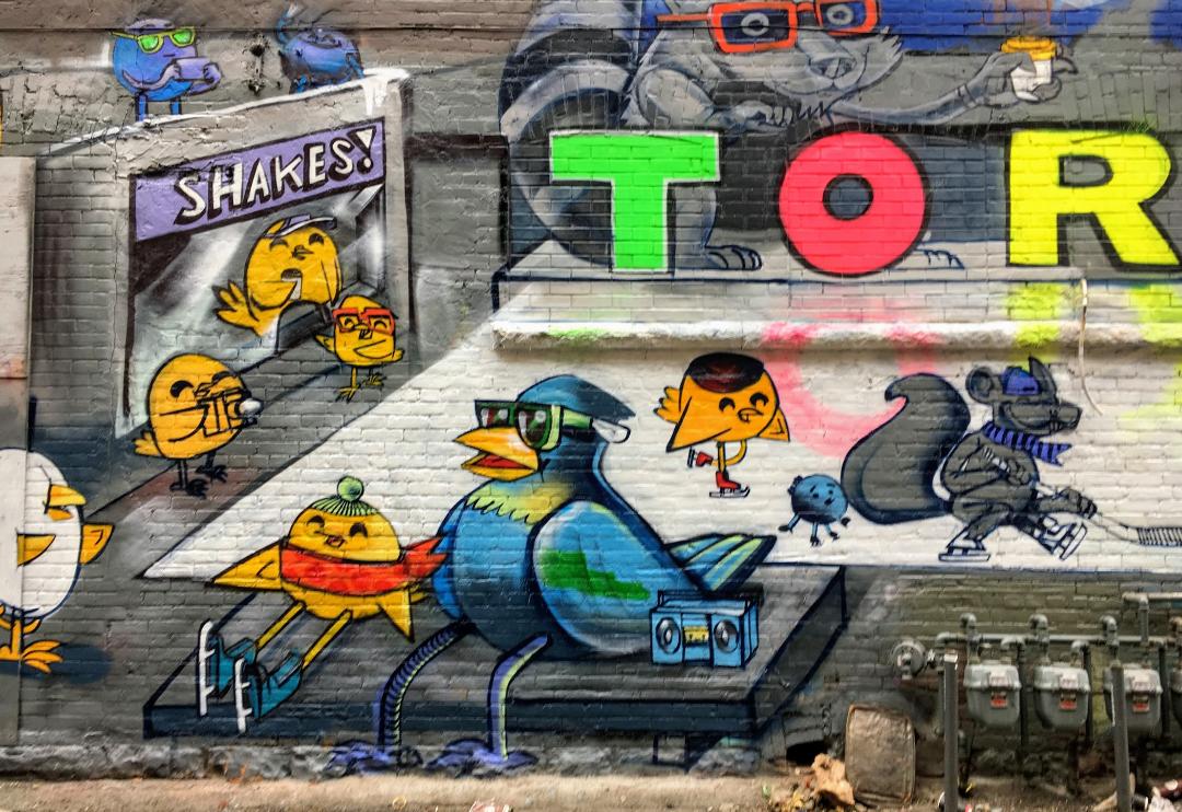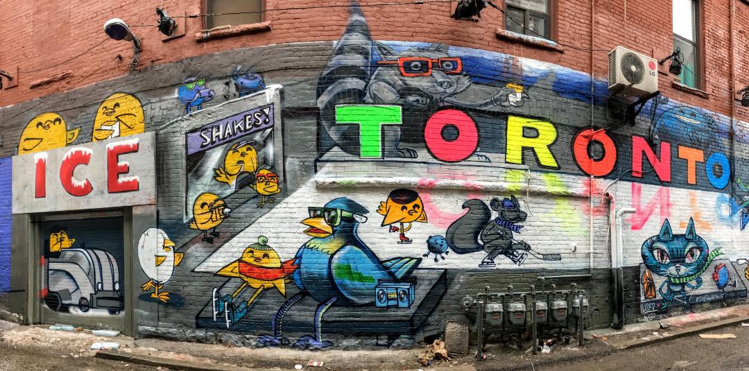 The colours in the word “Toronto” must look amazing at night under the black lights.