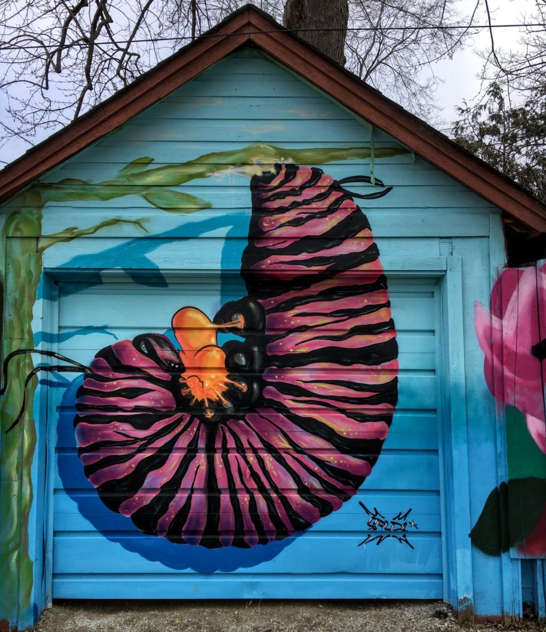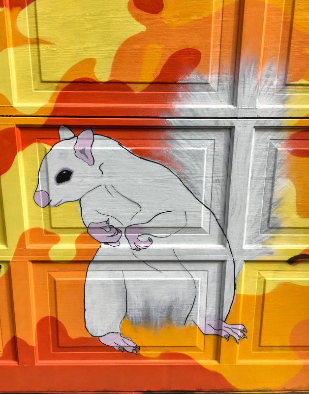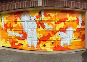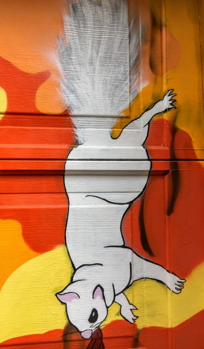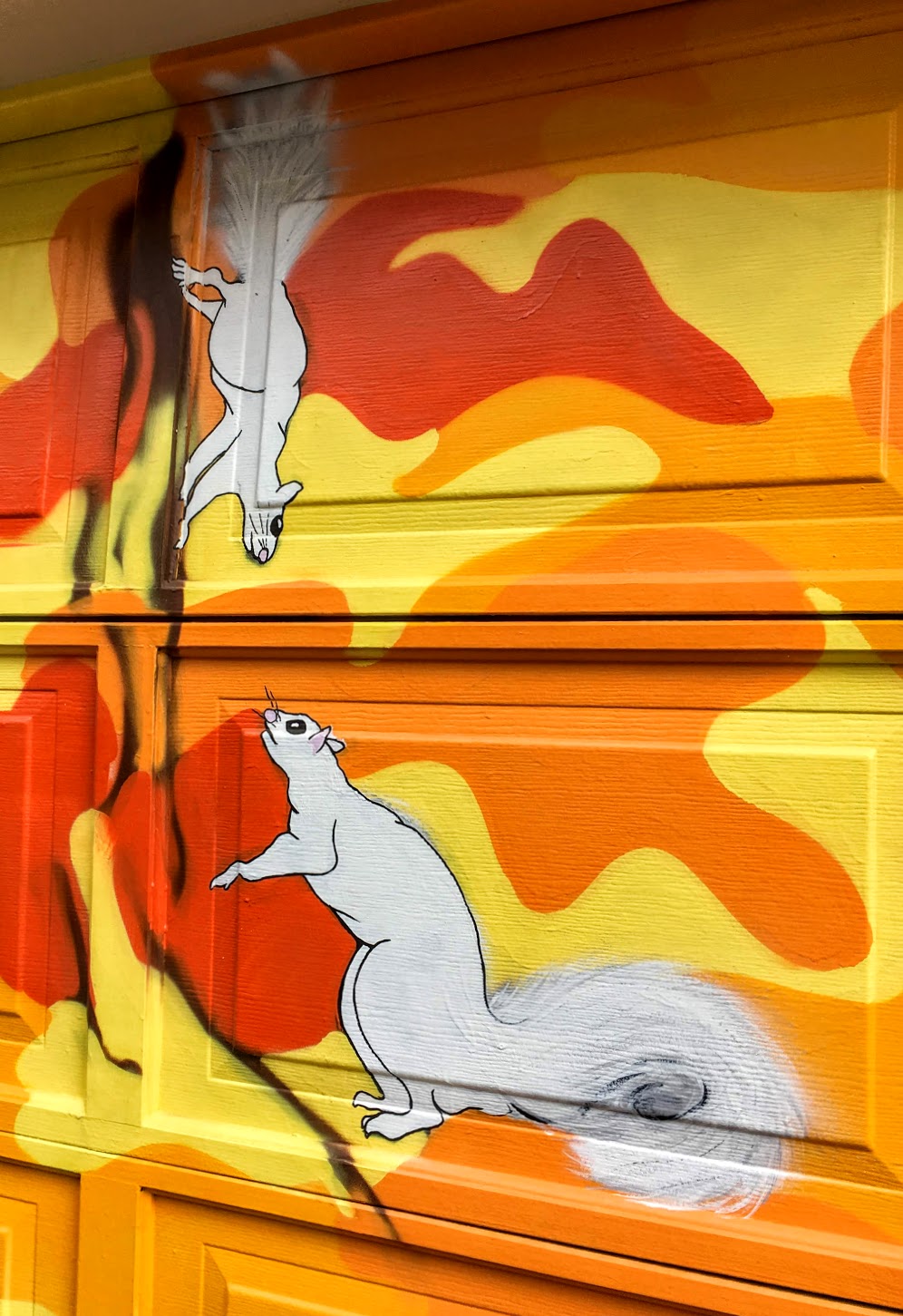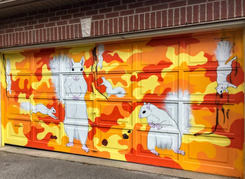 I was wondering why an artist had chosen to paint the squirrels white, on this garage door.