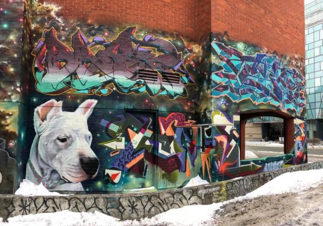 “Many Graffiti dogs, like this St. Bernard, live in the alleys.”
